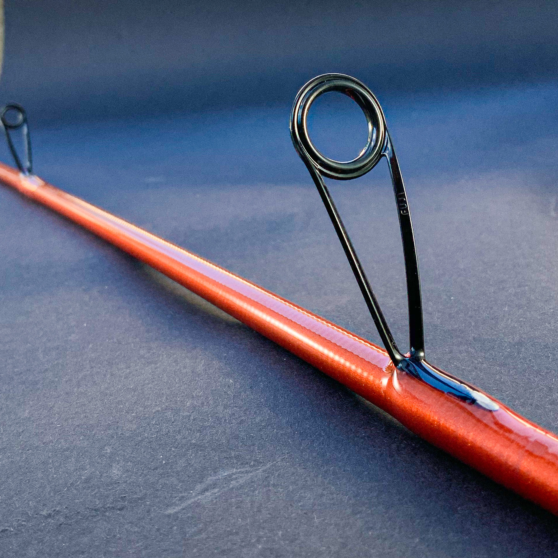 Und Marc hat natürlich eine ausgewiesene Expertise in Seide! Aber einen Versuch gebe ich mir mit dem Fishhwak erstmal auf einer Probewicklung. Folgender verwegener Gedanke beschleicht mich die ganze Zeit: Nylon in verschwurbelten Farben als Unterwicklung und fixiert und dann den Ring "druff" und mit Seide antüdeln und durchsichtig lackieren. Das werden Annemaries Megastrapse!