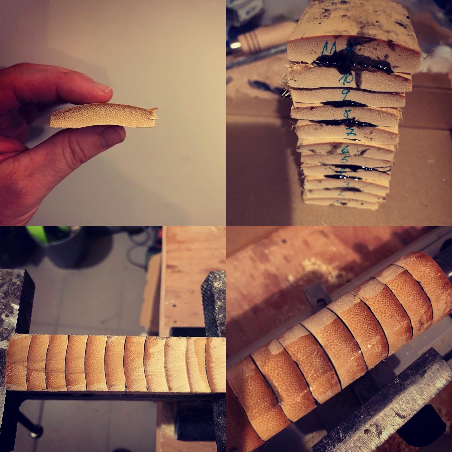 Der verwendete Kleber für den Bambus Spacer ist ein 2K Epoxy Kleber mit schwarzer Farbe ergänzt. Hab aber auch die Oberflächen vom Bambus geflammt...Wollte eben genau diese schwarze Trennlinie erzeugen.