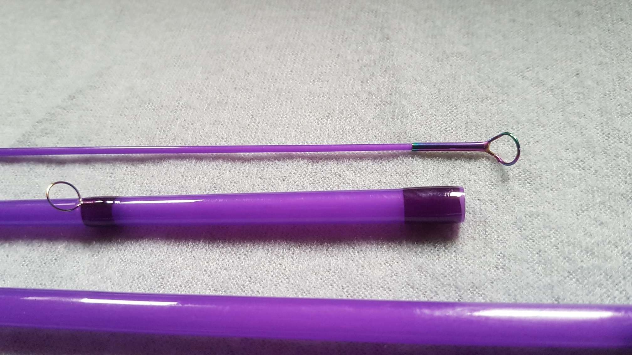Den Rollenhalter und die Ringe kann ich ja identifizieren. Das erste Mal, dass ich diesen irisierenden Ringen eine Existenzberechtigung zuerkenne ist tatsächlich an dieser Rute. Kommt gut zu der Blankfarbe!