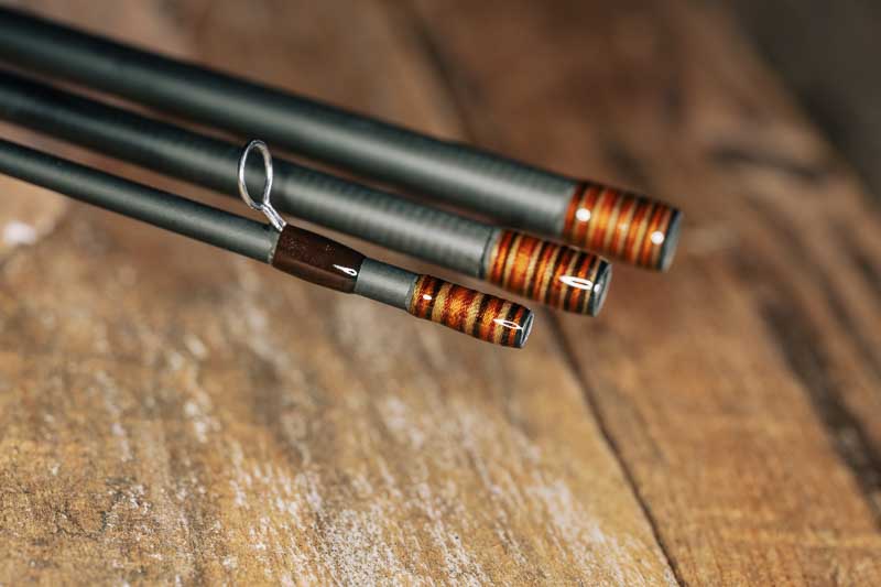 die gefällt mir wirklich ziemlich gut. Ich habe die 5 er und die Ringe auch in Chestnut gebunden. Deine gewählte Farbgebung gefällt mir ausgesprochen gut und ich glaube sogar, dass das Verwenden, der braunen Ringwicklungen, mit den Akzenten des Madeiras, mir besser gefällt, als hättest Du alles mit Madeira gewickelt. Und ich habe jetzt auch gesehen, dass die Rutenaufkleber immer noch mit weißer Schrifft sind. Ich dachte fälschlicherweise, die sind mit etwas grün, wie im Logo auf dem Etui. Meinen Blank, den hatte ich schon sehr lange, bevor ich den mal aufgbaut habe.