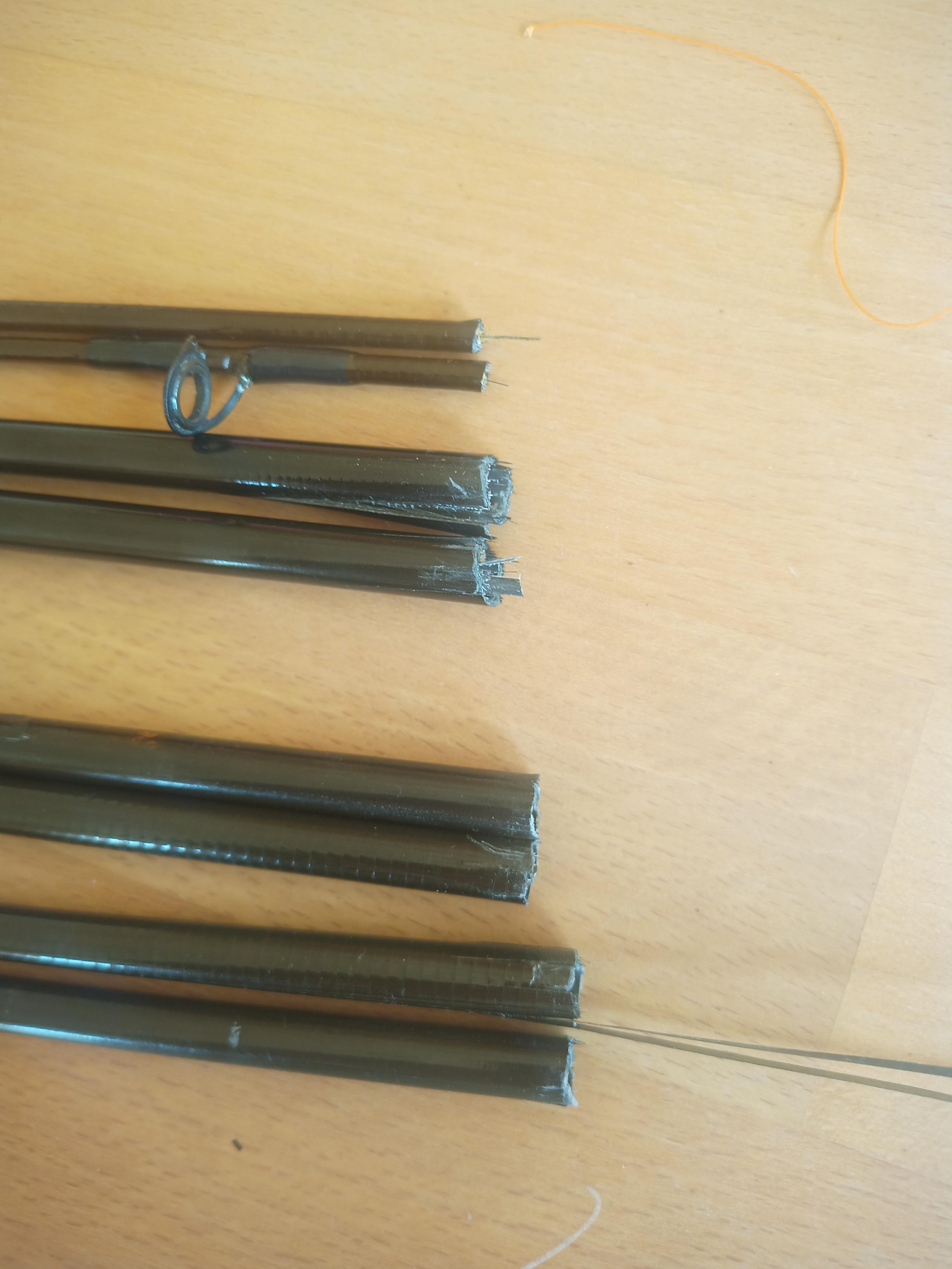 Da ich das zerbrochene Blankstück aber nicht weiter teilen wollte, habe ich ein Blankstück genommen, welches ebenfalls aus IM12 Carbon bestehen soll, wie die zerbrochene Rute (viertes und fünftes Bild).