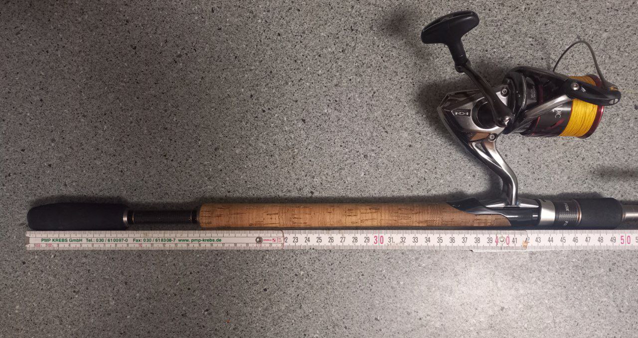 Ein 50cm langer Griff ( gesamt ), wie auf deinem Bild zu erkennen, wäre mir viel zu lang zum Jiggen. Meine (gesamte) Grifflänge incl. Vorgriff bewegt sich bei der Haltung, Rollenfuss zwischen kleinen und Ringfinger, so bei 41-44cm. So bin ich vorne mit dem Zeigefinger am Blank. Entsprechend ist das Stück kürzer bis zum Rollenfuss.