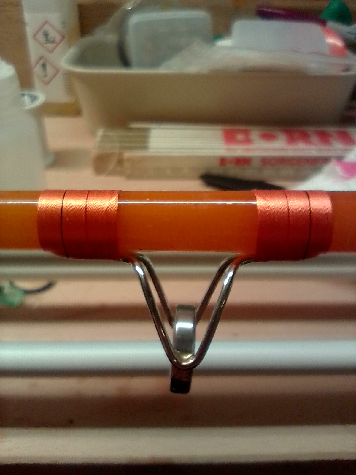 schöner Projektname, schöne Farben, schöne Ringe und schöne Fliege. Da sollte man doch, gerade zur Maifliegenzeit, schöne Fische mit fangen. Bin gespannt auf den Gesamteindruck der fertigen Rute!