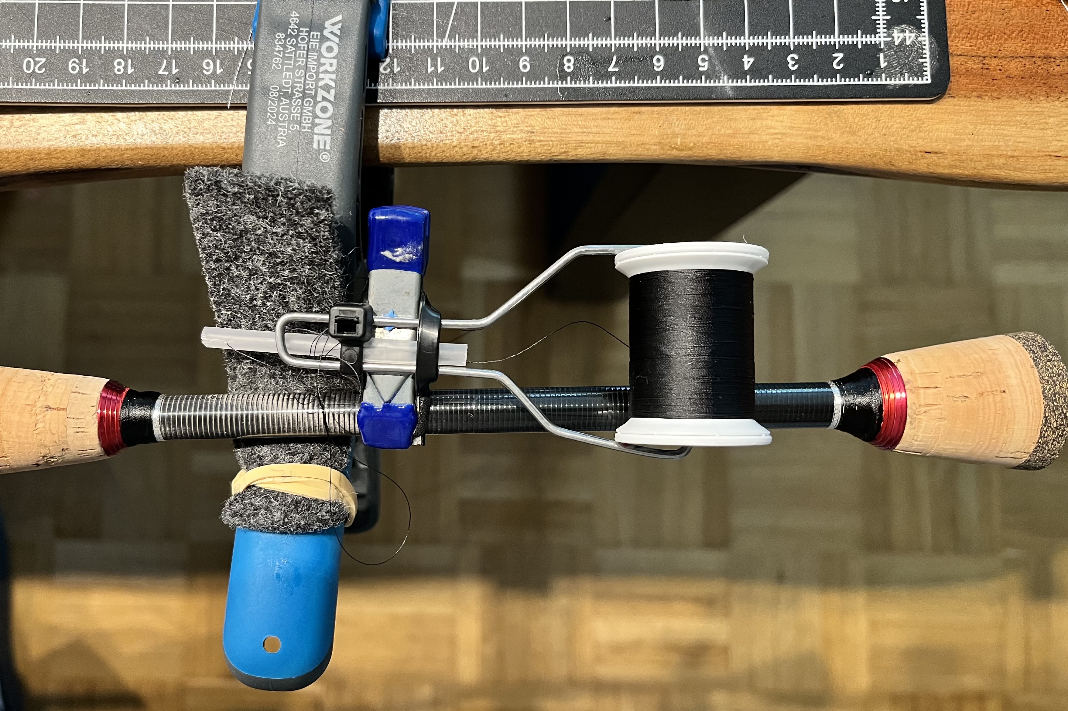 Während hier die meisten (oder vielmehr die wenigen) Foristen offenbar noch dem heiligen Lack beim Trocknen zusehen (und ich tue das auch, aber nicht so ausgiebig), habe ich meine neue Rute schon fast fertig.