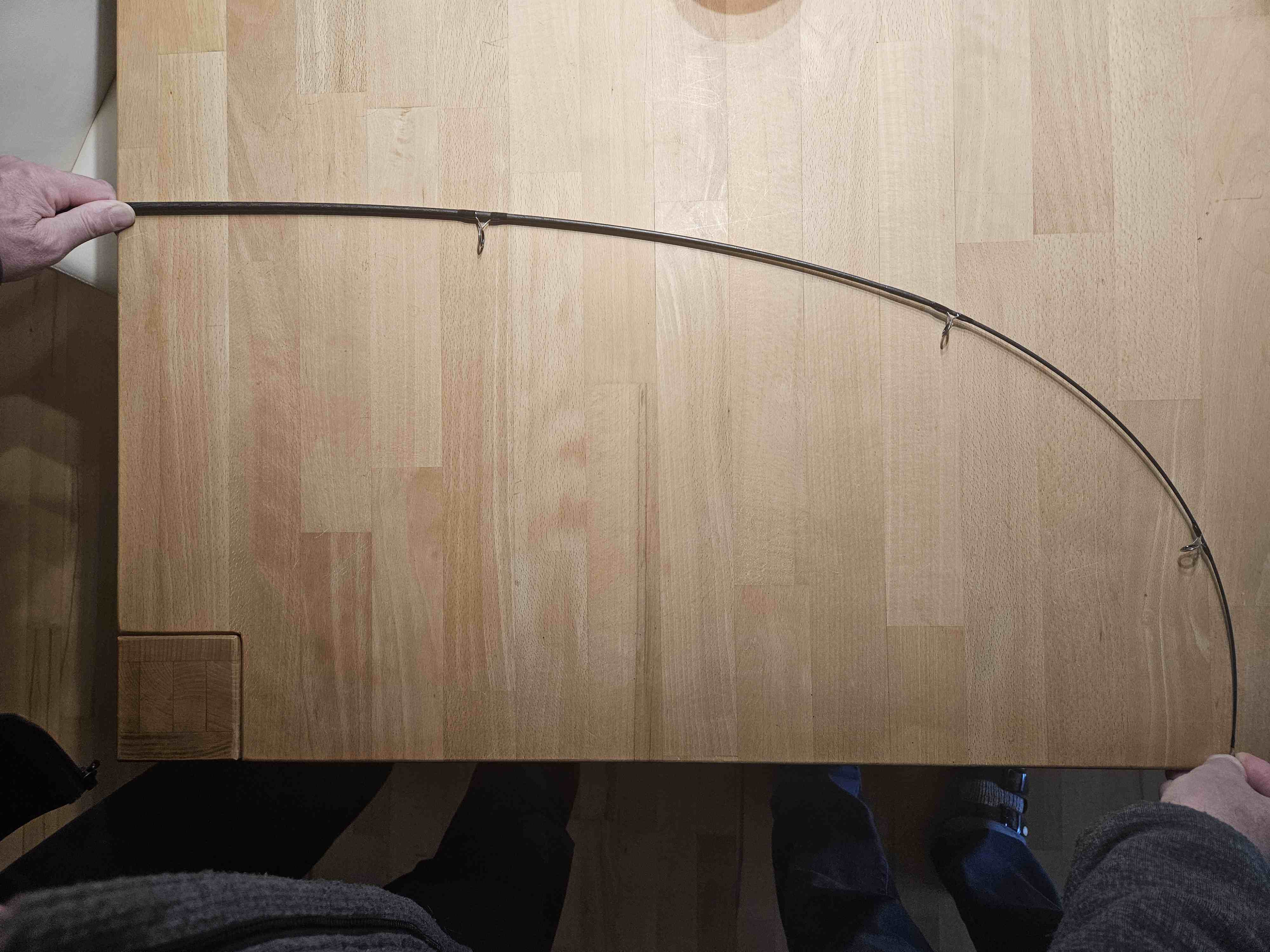 Um zum Ausgangsthema solide Spitze zurückzufinden, ich würde in dem Bereich eine harmonische Biegekurve als Ziel erreichen wollen, zumindest in jedem Fall bei Fliegenruten.