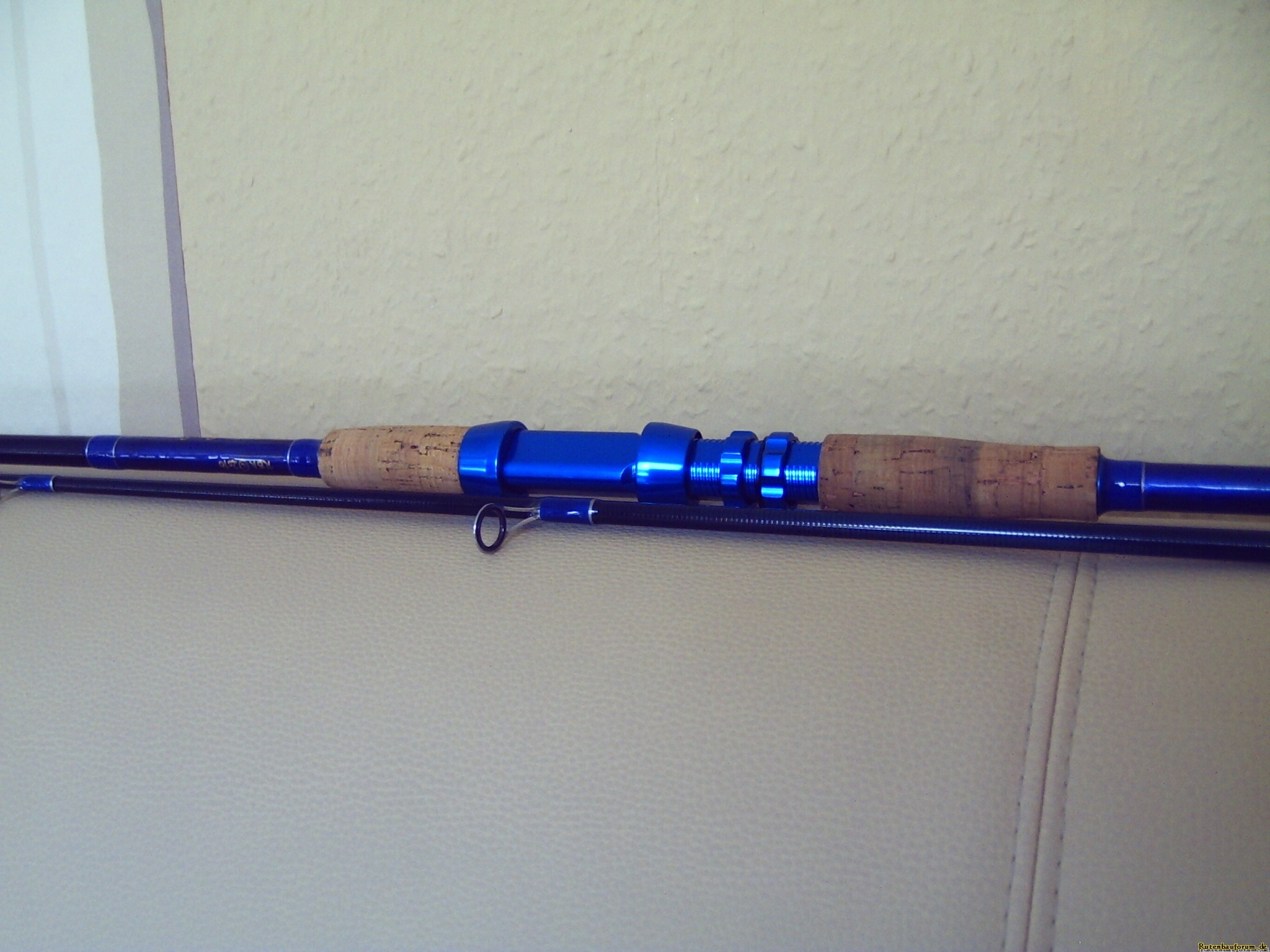 Der untere Teil der Rute wurde dann auch noch mit Metallic Lack an den Rollenhalter angepasst. Beim Lackieren wurde die "Klang"-Methode des Einmassierens angwandt. Da bin ich noch nicht ganz zufrieden mit dem Ergebnis, aber egal bei der Nächsten wird´s besser.