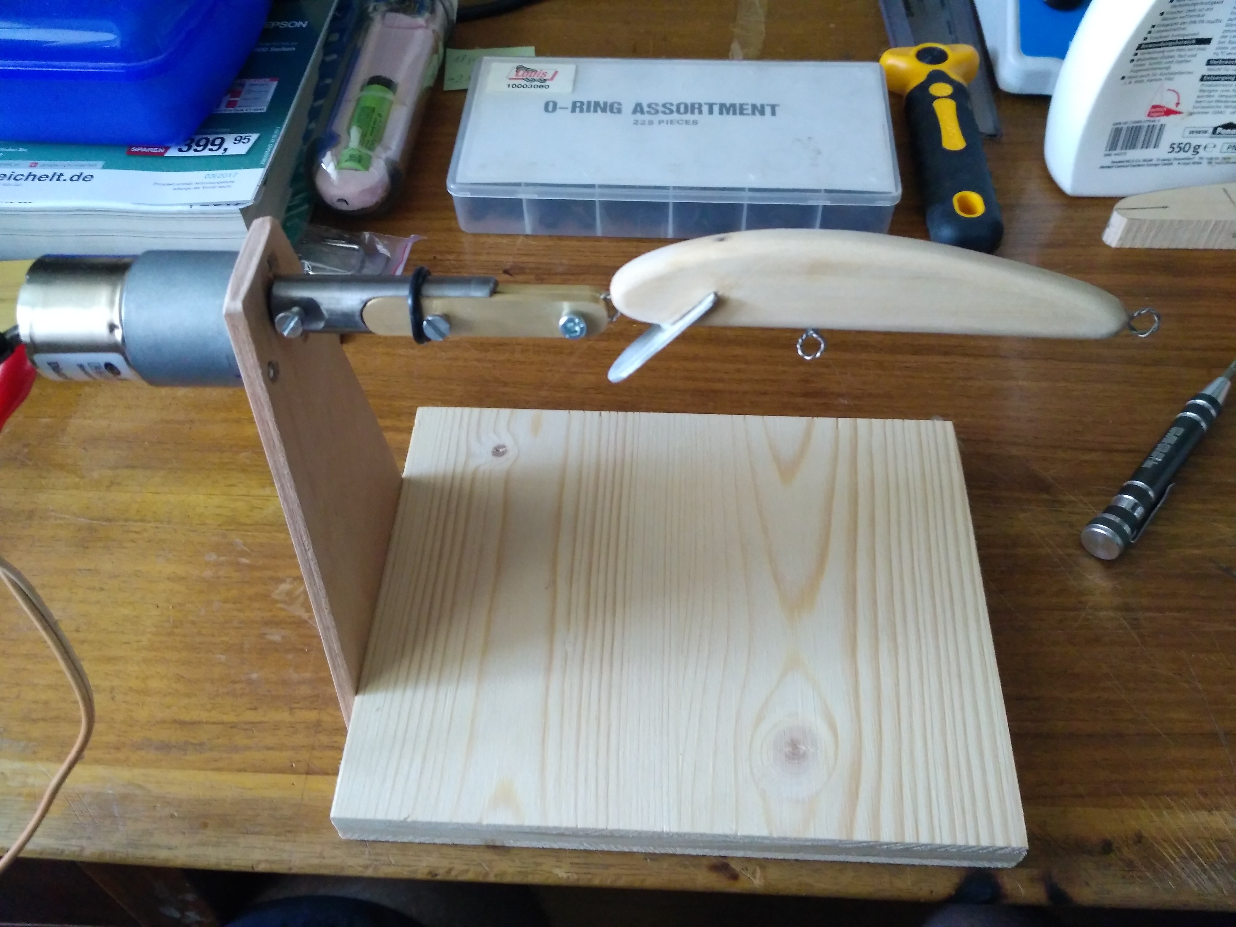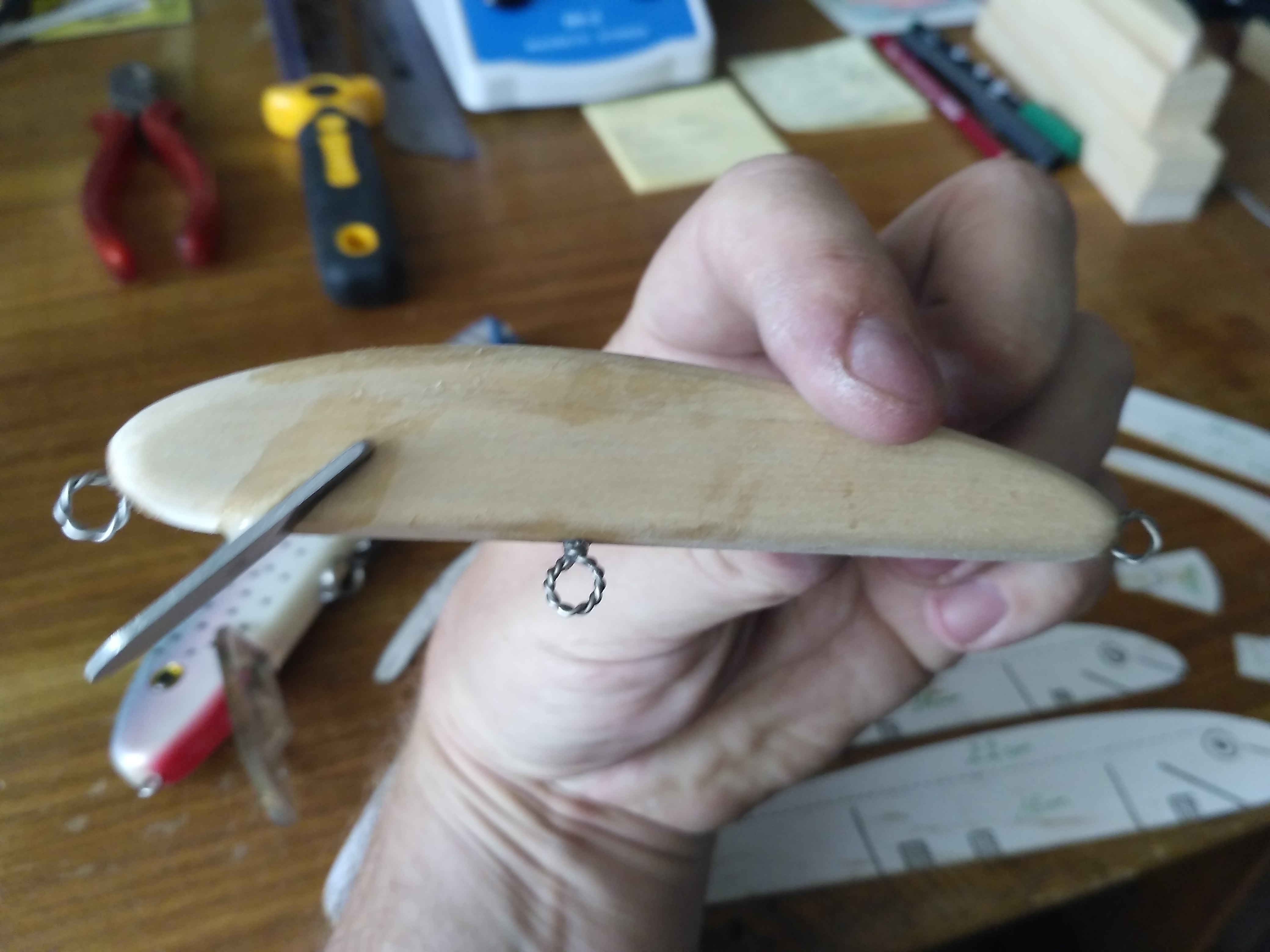 Lindenholz habe ich herumliegen gehabt, also gleich daraus den ersten Wobbler gebastelt.