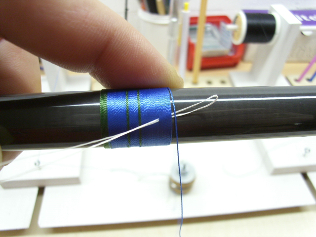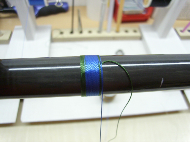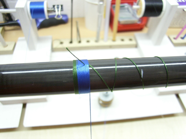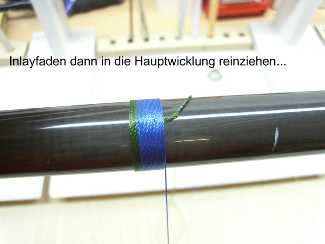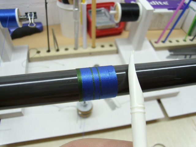 ich frage mich nur, weshalb du den blauen faden über die wenigen grünen wicklungen laufen lässt und nicht darunter, dann hast du einen reinen grünen teil.