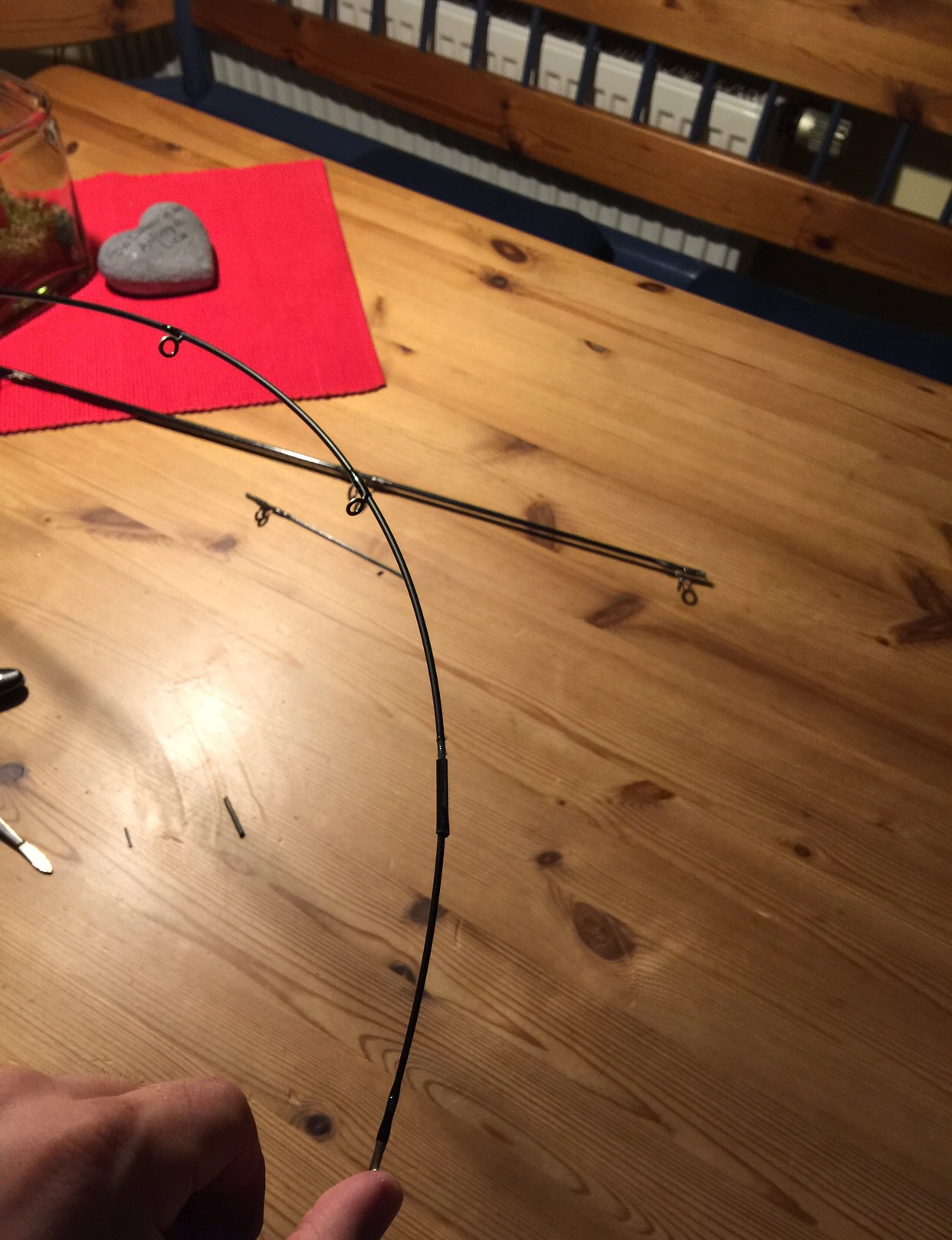 So wie der Aktionsverlauf auf dem Foto ausschaut, wäre die Rute wohl auch gekürzt (statt der Spitze n Top drankleben) einsetzbar. Sollte es denn mit der Hülse so gar nicht halten...