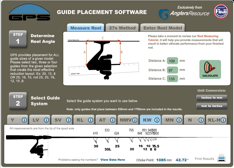 RH und Rolle auf den Blank, die Spule der Rolle abschrauben und ein Stück Schnur oder einen Zollstock als verlängerung der Achse anlegen.