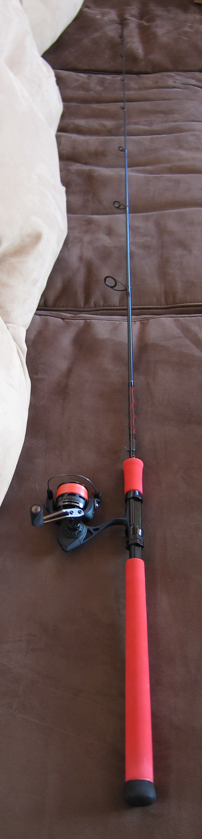 Nun, ich habe jetzt mindestens 10 mal auf den Eintrag geklickt, und mir die Rute angesehen. Das rosa ist nicht meins, aber inzwischen sehe ich auch, dass es gut zur Rolle und zur Schnur passt. Die Zierwicklungen unterstuetzen das schoen.