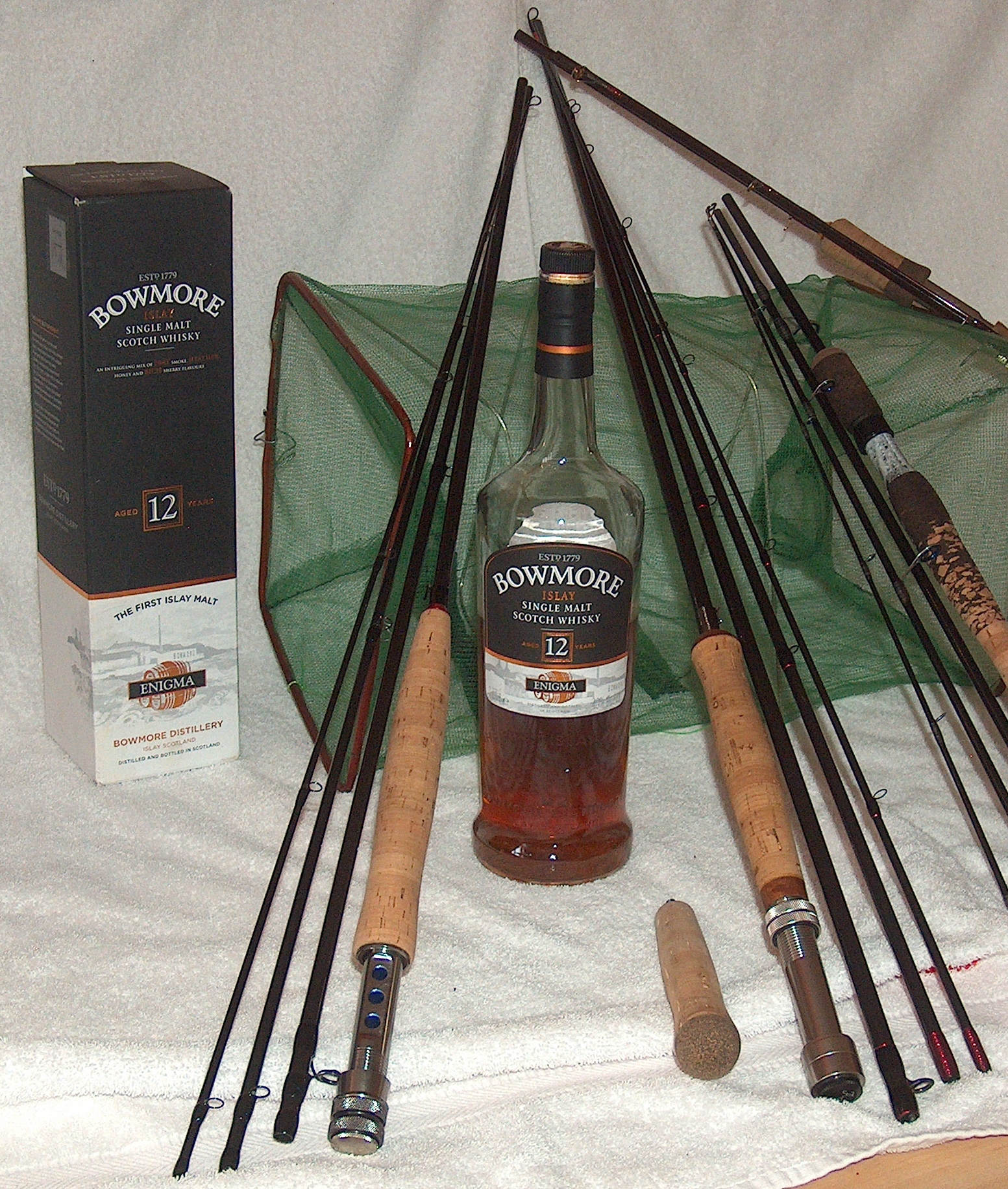 1. 4-teilige Fliegenrute in 9' und #6 aufgebaut auf einen Blank (Herkunft unklar aber lt. Ian Collins wohl ein CTS-Modell) von Karl, den er mir mal "aufgedrängt" hatte Augenzwinkern Beim letzten Rutenbautreffen von div. Leuten geworfen und für sehr gut befunden Zweidaumenhoch