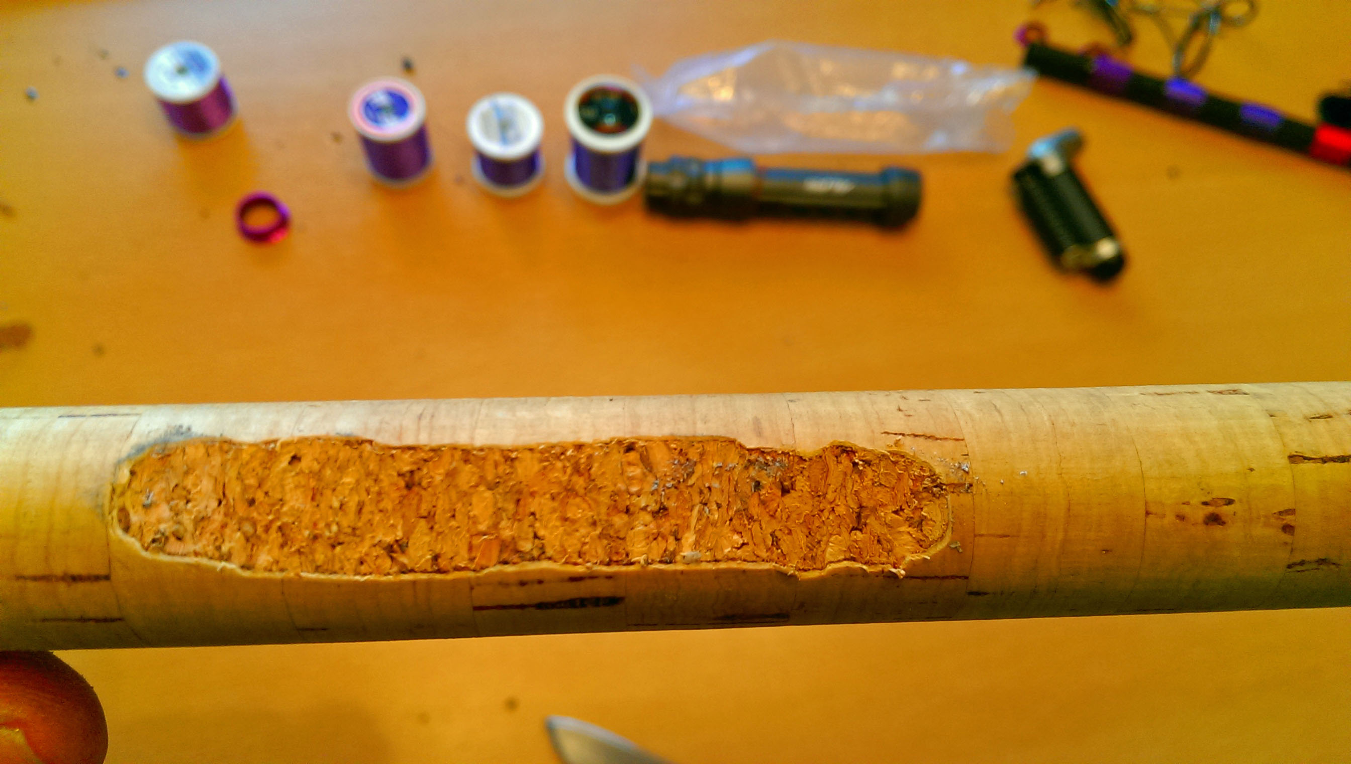 Als ich vor drei Jahren mit dem Karpfenfischen begann, habe ich mir drei FOX-Horizon Vollkork zugelegt. Als ich mir letztes Jahr dann 3 Century NG+ aufgebaut habe, erbte meine Freundin (Sie begleitet mich meistens beim Angeln großes Grinsen !) die Ruten. Leider waren sie schon nach ein paar Trips ziemlich vergammelt und der Restaurationsversuch scheiterte, weil FOX beim Griff sparte (siehe Bild). Ist schon echt frech, wenn man den Stückpreis von 190€ bedenkt!!