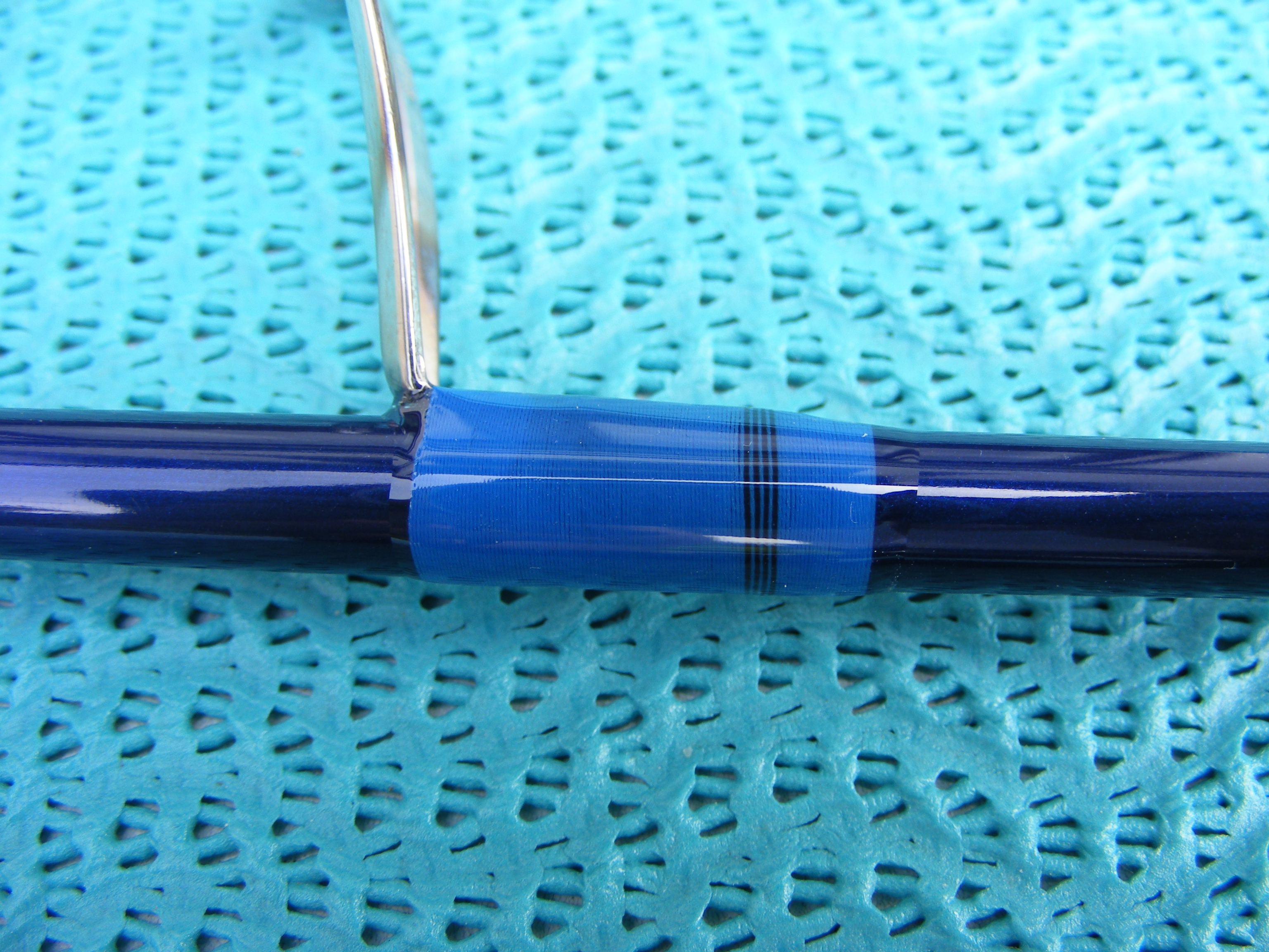 Die Ringe wurden mit NCP Bindegarn in Stärke A von PacBay an den Blank getüddelt (Royal Blue). Eigentlich bin ich mit den Winklungen recht zufrieden, ob ich beim Fotografieren gesehen habe, dass ich an ein paar Stellen das Garn nicht ganz so gut gepackt habe.