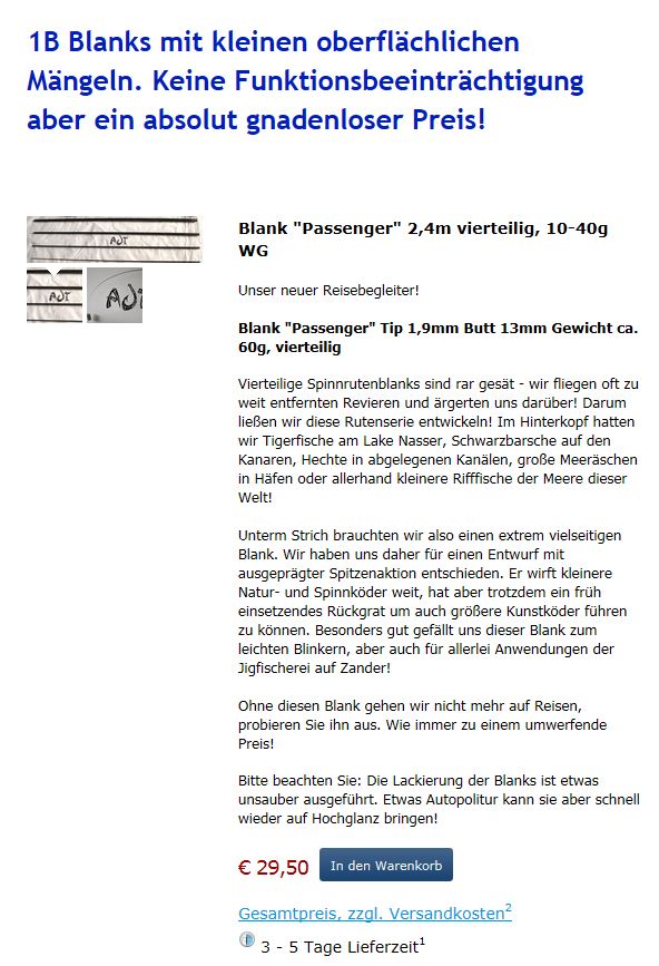 | RE: Biete 1B Blank Passenger 2,4m 4-teilig 10-40g Advanced Tackle |