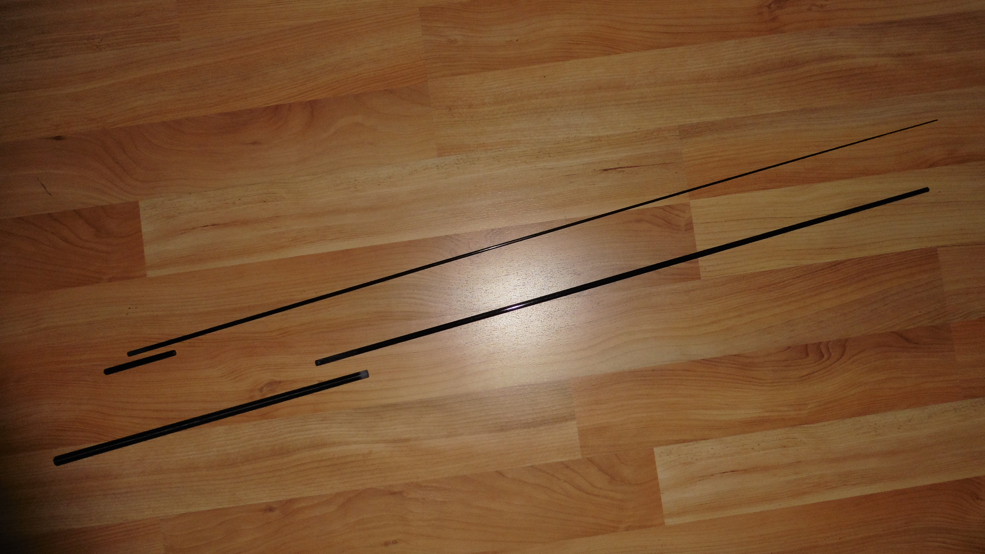 Jetzt ist die Rute 2,15m lang und wiegt ca. 150gr.