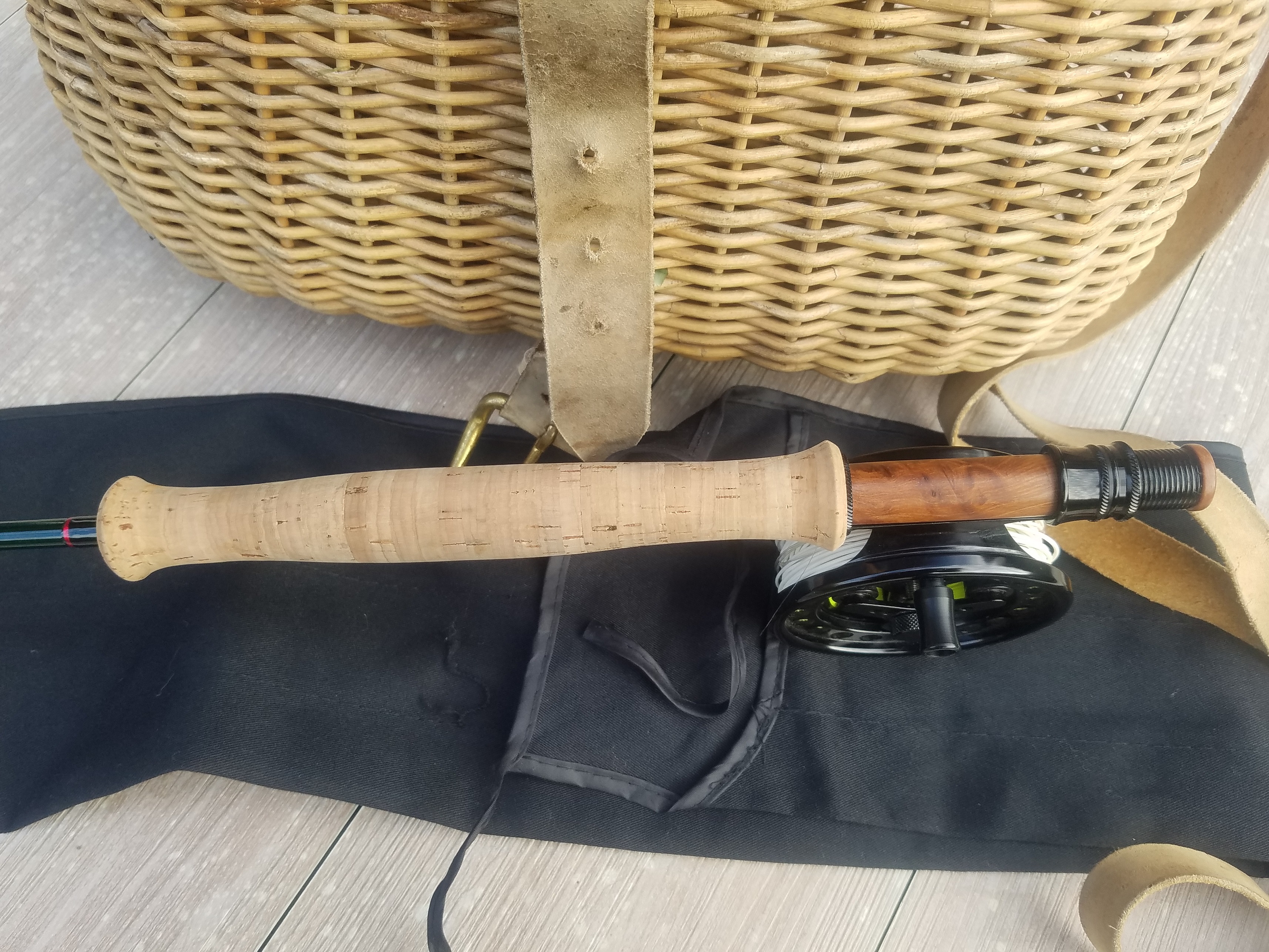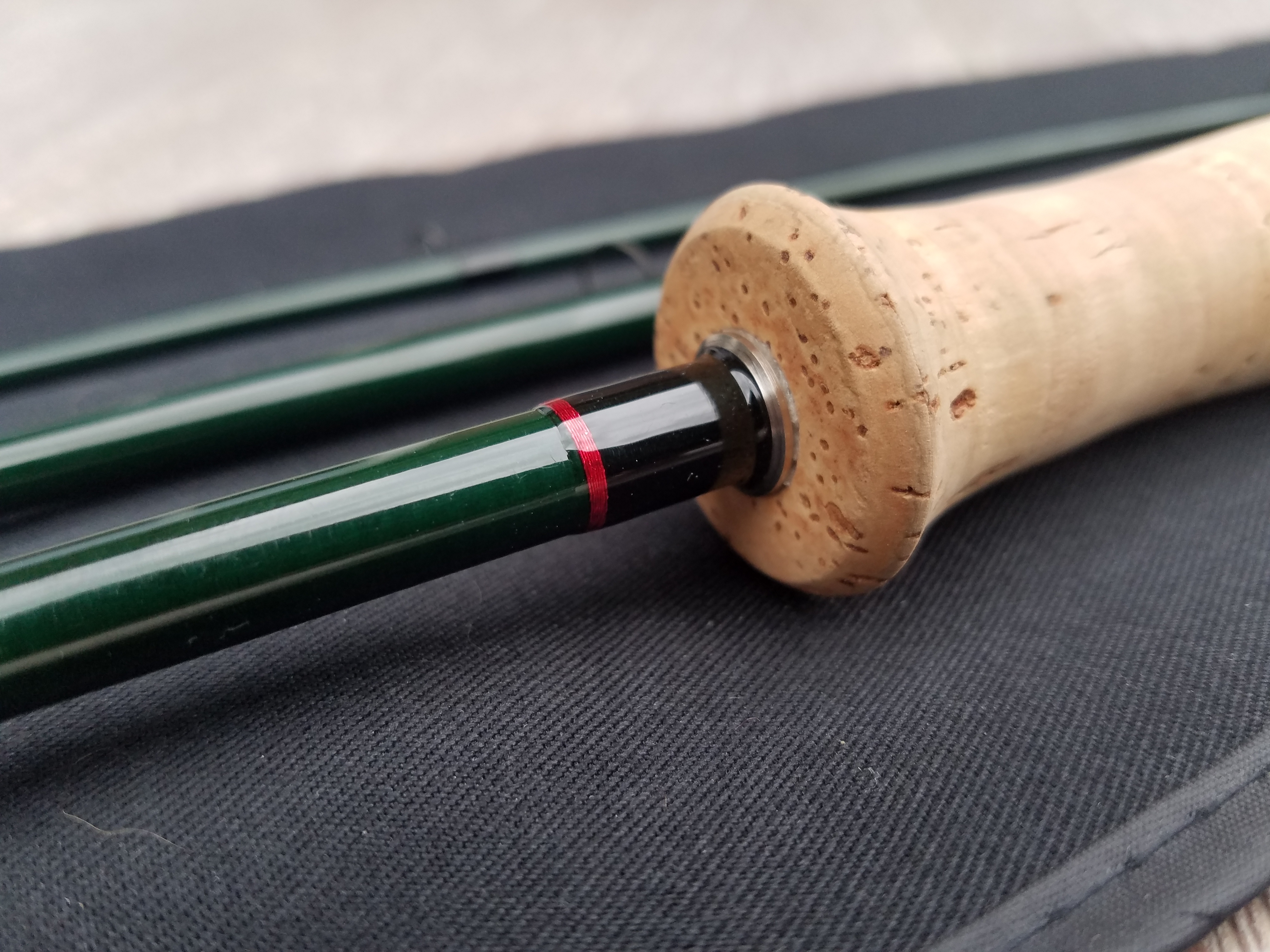 Die Rute wiegt gerade mal 61 Gramm, obwohl obwohl bestimmt ein paar Gramm zusätzlich im Griff stecken. Die Bohrung der Griffstücke waren viel zu groß. Habe deshalb 6 schmale Tapewicklungen gewickelt und die Lücken mit PUR Leim ausgeschäumt. Da ich Angst hatte, dass der Druck den Griff verformt habe ich ihn vorher ordentlich mit Tape umwickelt. In der Großaufnahme kann man sehen, dass der Winding Check die Bohrung nicht völlig abdeckt. Vorher ist mir das gar nicht aufgefallen.