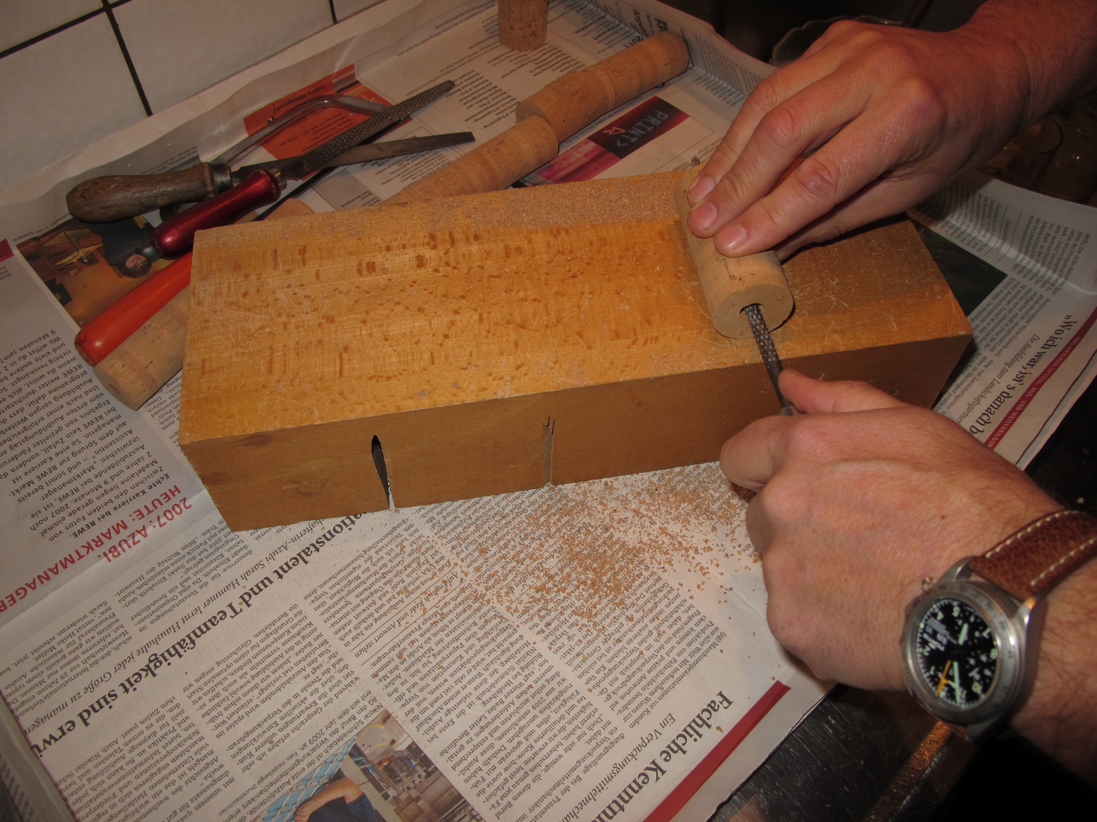 2. mit der groben Rundfeile, eher schon -raspel, wird begonnen.