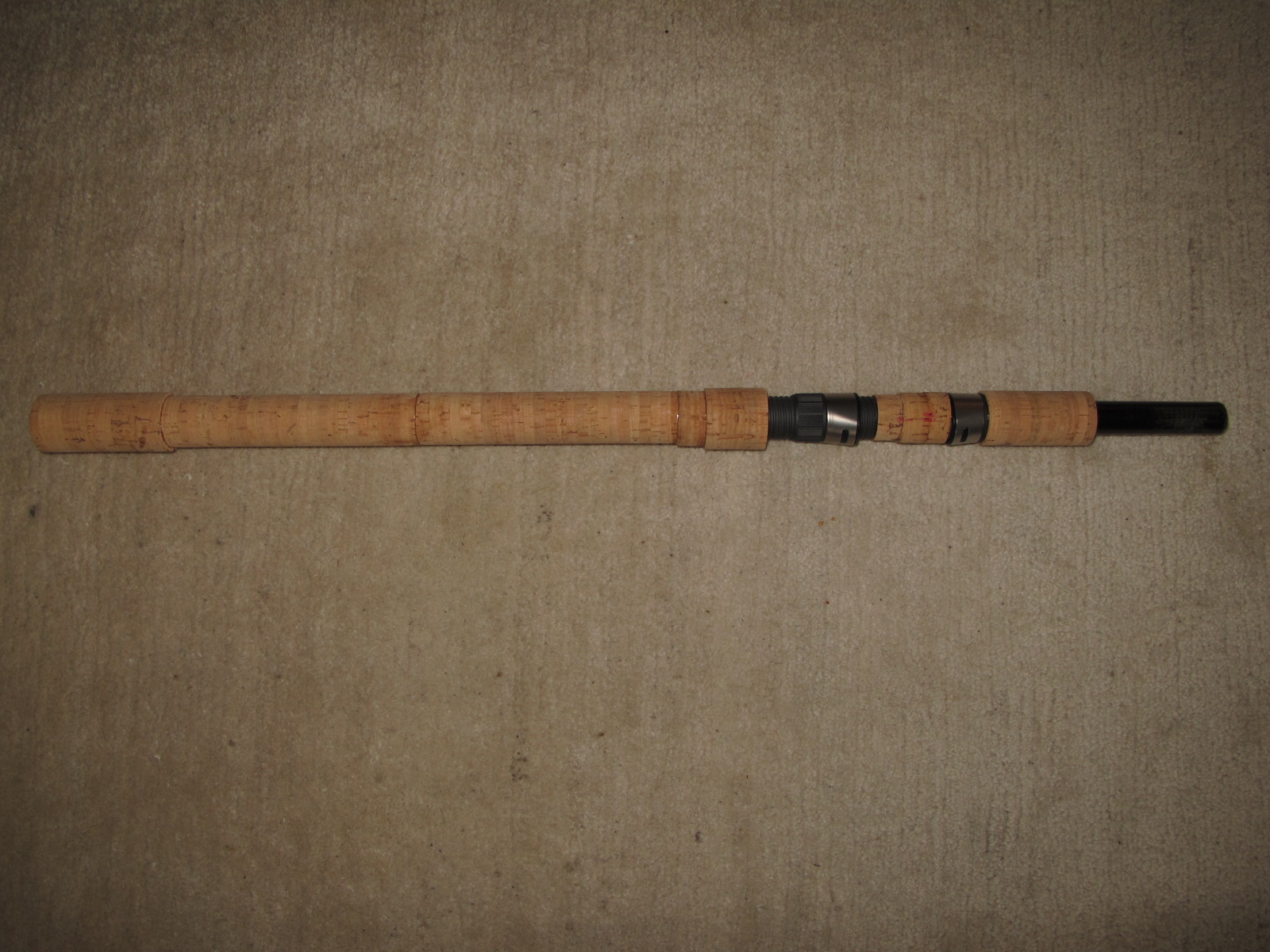 Hatte noch einen gestrippten Blank einer alten Magna rumstehen, mit abgesägtem Handteil und einen steifen Restblank, der subjektiv hervorragend als Verlängerung geeignet erschien. Der Konus schien zu passen, kein Gewackle, kein Geklapper...