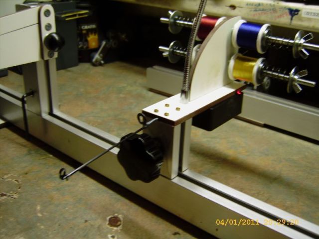 Wie funktioniert das mit deinem Garnrollenhalter? Läuft/Gleitet der seitlich mit? Oder muss man festschrauben?