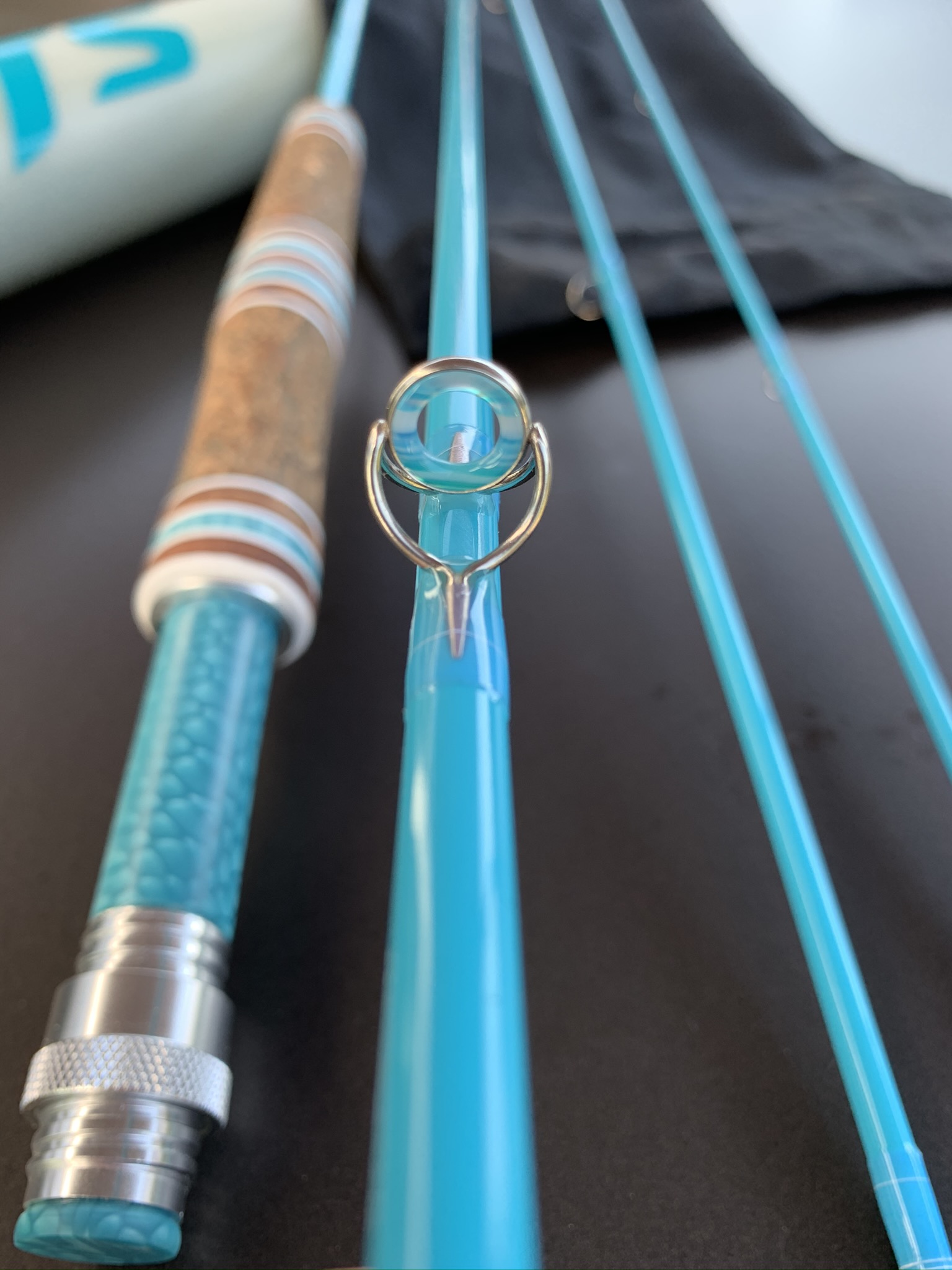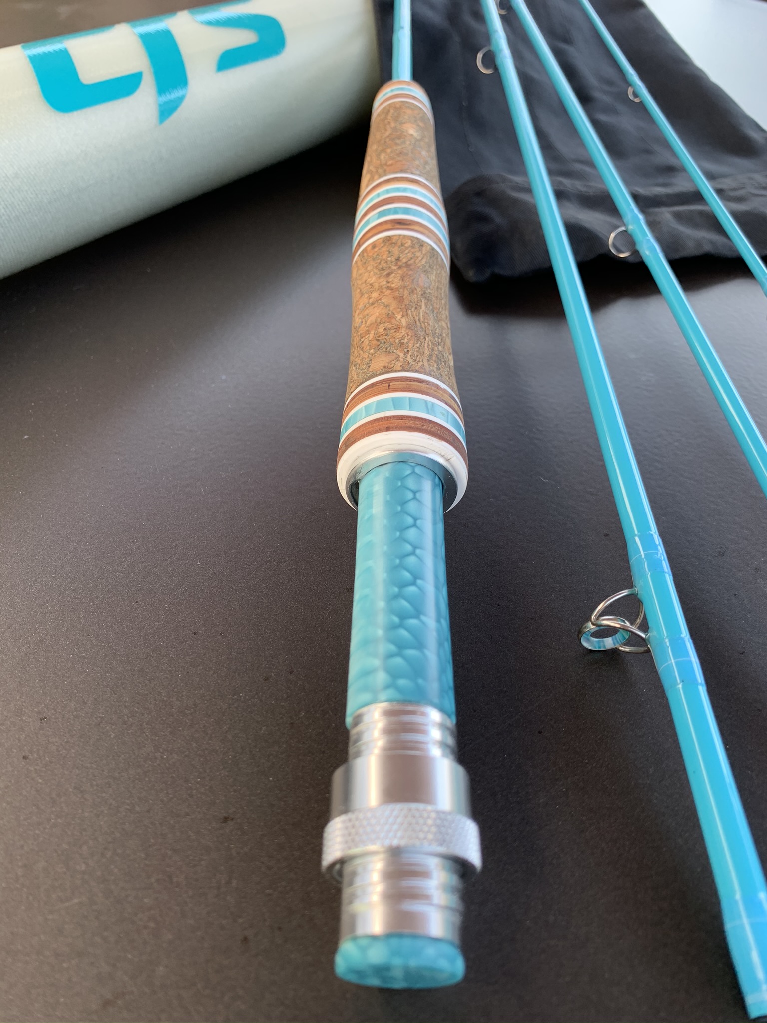das Blank hatte ich schon ne ganze Weile zuhause liegen...die Farbe hatte es mir einfach angetan. Allerdings wusste ich nicht ganz so recht, mit welchen Komponenten ich die Rute ausbauen soll. Welchen Spacer? Holz? Alles hat mir irgendwie nicht 100% getaugt...