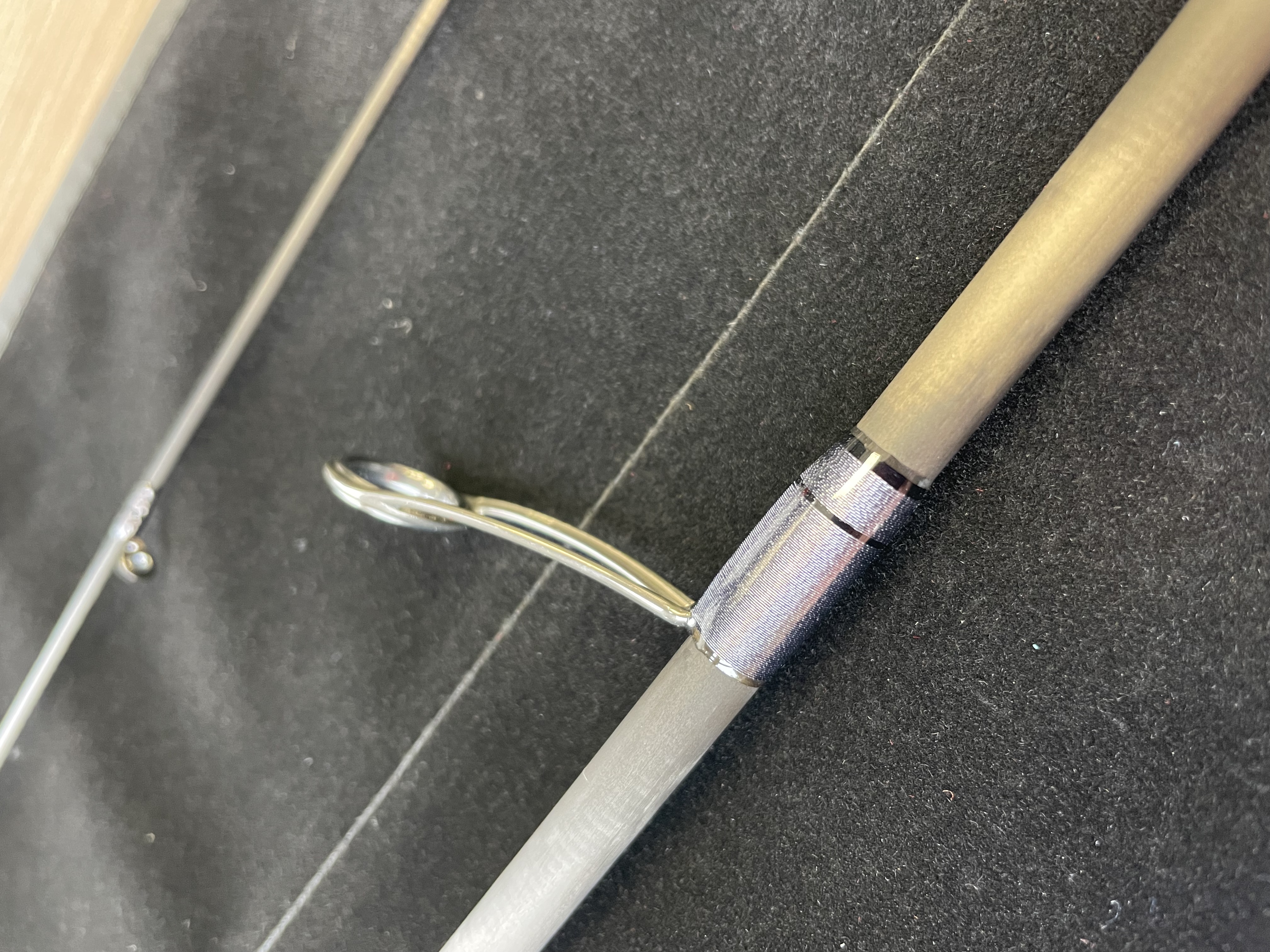 Er ist gut für die erste Lackierung, um den Lack gut ins Garn zu bekommen, gerade in die Tasche um die Ringfüsse. Der U40 High Build passt für mich besser. Aber auch noch nicht so, wie ich es gewohnt bin. Werde noch mal einen weicheren Pinsel probieren. Die werden ja keinen Lack auf den Markt bringen, der nicht funktioniert. In der USA hat er ja einen ganz guten Ruf. Der Glanz ist für mich überragend und die Transparenz auch, jetzt muss ich ihn nur einfacher verarbeiten können.