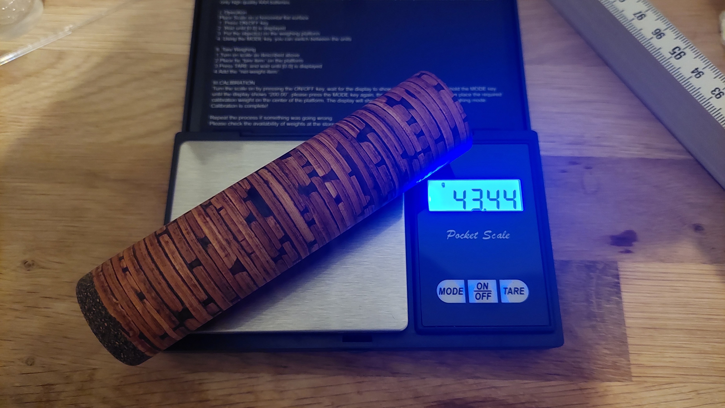 Vom Gewicht her weiß ich nicht ob sich das unterscheidet, hab keine Erfahrung mit sibirischer Rinde. Das zylindrische Stück unten wiegt auf 11,7cm Länge bei 29mm Durchmesser und 10mm Bohrung 43g. Der Full Wells ist mit 57g relativ schwer bei 16,5cm Länge und einer Dicke zwischen 31 und 25mm, Bohrung auch 10mm, hat aber auch 4x 6mm Rubberkork dabei, was alleine schon grob 12g ausmacht.