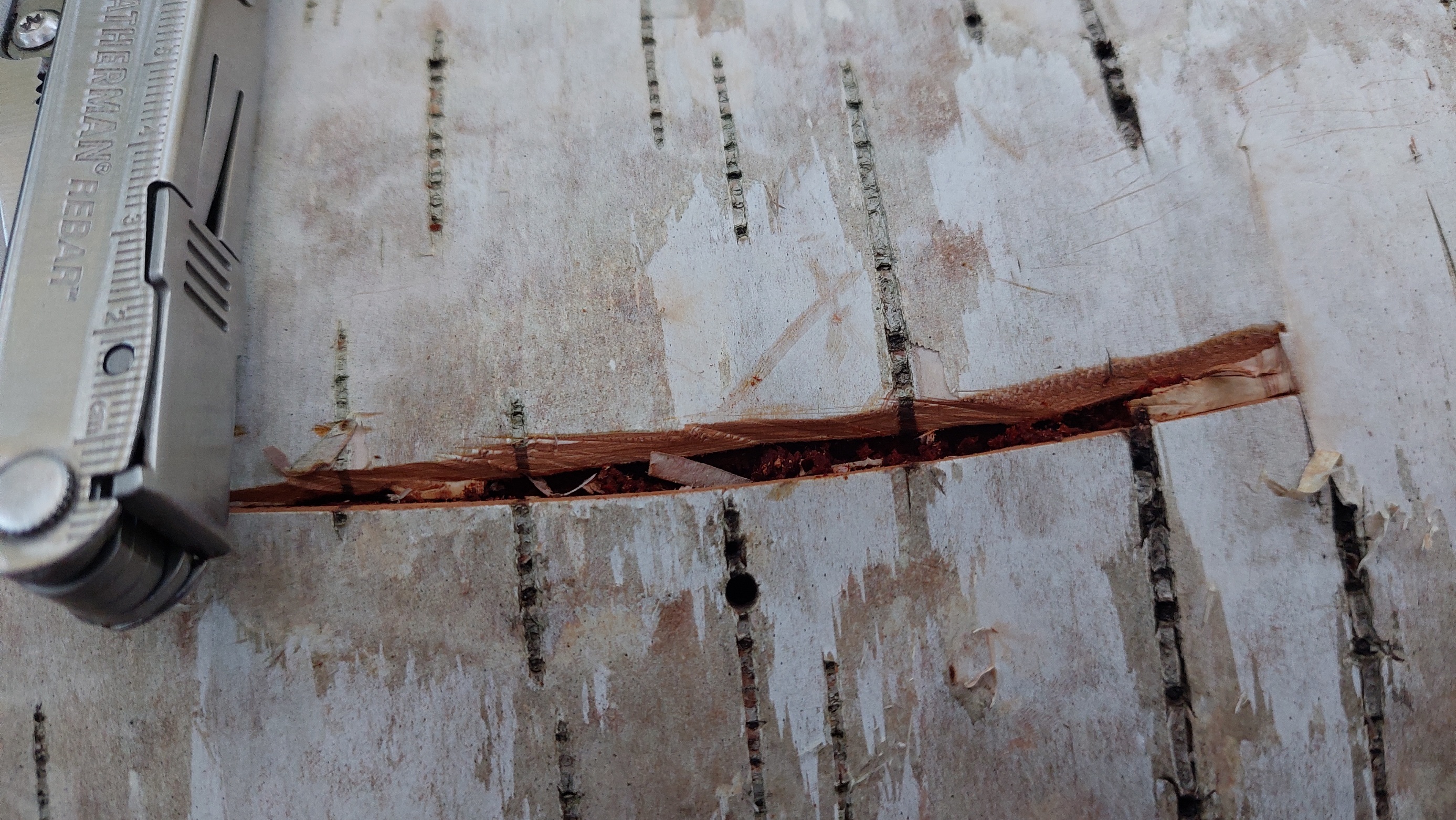 - Auch wenn man dafür länger sucht ist es viel weniger Arbeit einen Baum mit dicker Rinde zu finden, als mehrere mittelmäßige Birken zu ernten - bei 3mm zu 1mm muss man nur ein Drittel so viel Rinde ernten, säubern, Ringe sägen/schneiden, leimen, etc. Einfach nen kleinen Keil rausschneiden und nachgucken, dann bei Bedarf merken und wiederkommen