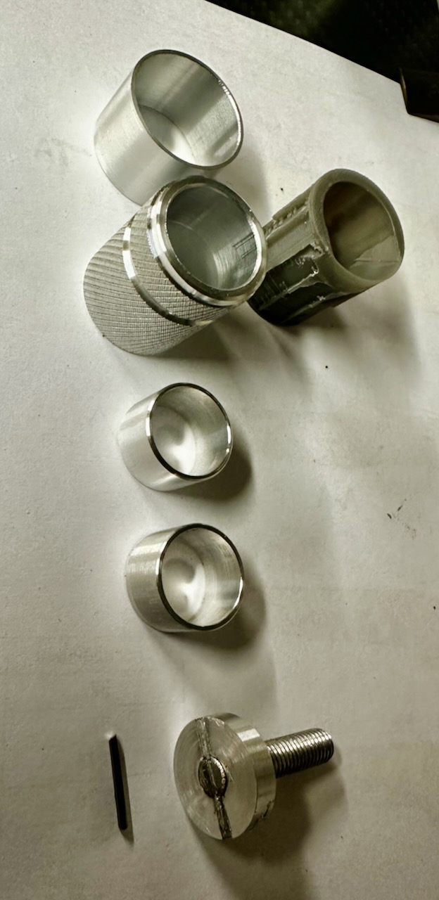 Jedenfalls ist das zweite Teil von unten jetzt versaut, wegen angeschliffen und Kleber. Habe meinen Aussetzer zum Glück erkannt, bevor der Kleber richtig anziehen konnte. Also Griff und Spacer gerettet fröhlich