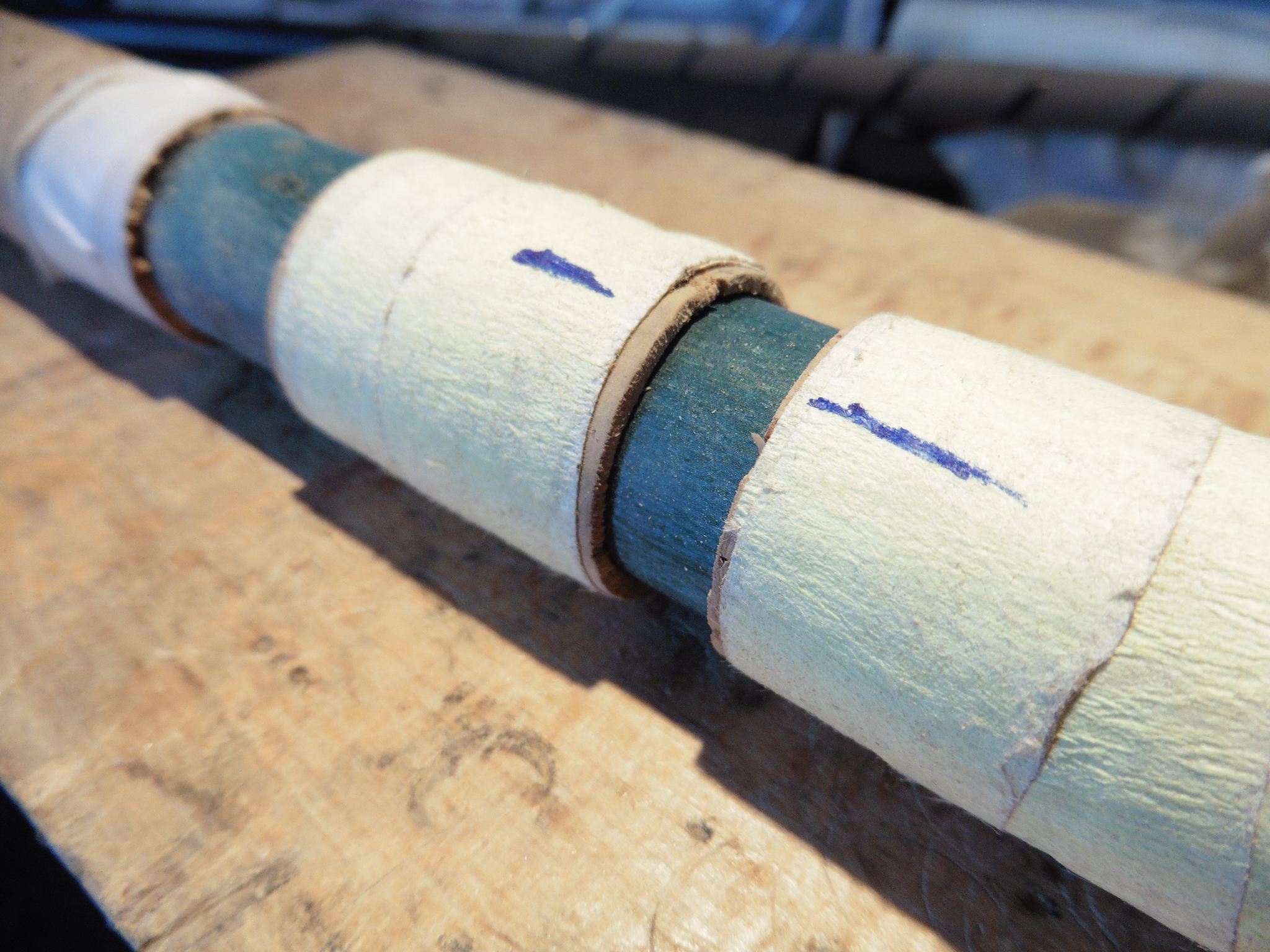 Ohne das tape hätte ich die gleich auf dem Kork gelassen, denn der hat schon das nötige Außenmass. Mit dem Tape passen sie aber nicht. Und von dem Tape vorher auch nur paar cm für die Schubringe zu entfernen wäre nicht die beste Idee.