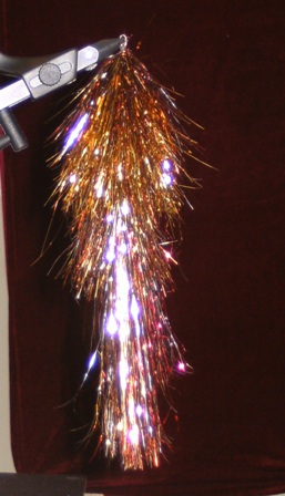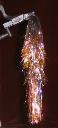 King-Size-Streamer, gebunden auf 3 Teile Stahldraht 1,5mm dreifach liegend verdreht, Sprengringe, Flash-/Hairbrush mit Silberdrahtseele, Bindefaden 15kg Fireline.