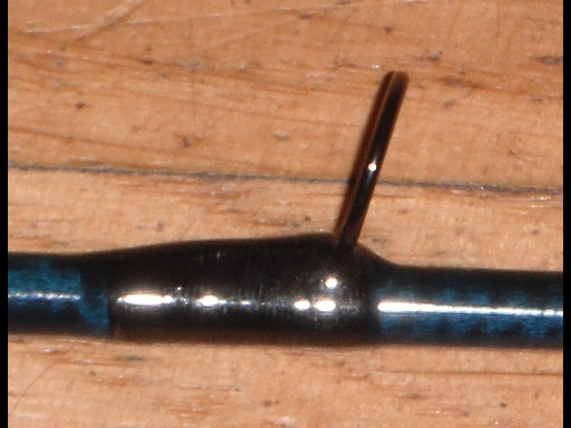Die Ringwicklung habe ich über das Ringöhr hinaus gewickelt und den Ringansatz mit in den Lack eingebettet, so dass kein enger Spalt am Ringansatz die Schnurreibung erhöhen kann bzw die Umlenkung der Schnur nicht so eng über den Ringdraht läuft, wie auf dem 1. Foto zu sehen.