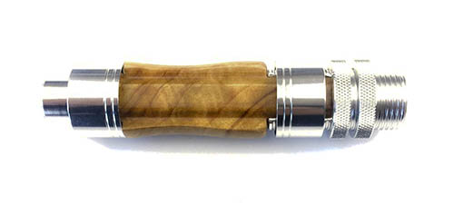 Das war das Eine und das Andere wäre Dein Aufbau jetzt. Ich sehe Du hast die Korkscheiben direkt auf dem Blank verklebt - super! Wirklich, nur ein Problem stellt sich da! Wenn ich das auf den Bildern richtig erkenne, zeigst Du das untere Ende des Handteiles auf dem die Korkscheiben bis zum Ende sitzen. Für mich heißt das, dass Du den Blank in die "Drehbank" mit dem dünnen Ende einspannst. Da bringst Du das höchste Drehmoment auf den Blank, statt am dickeren Ende das Geringere!