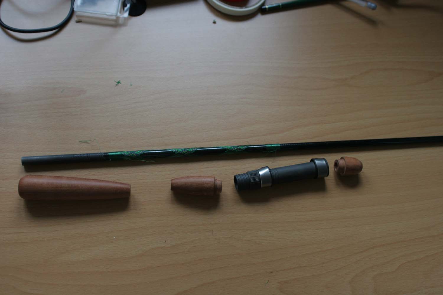 Habe die Holzstücke beim Rollenhalter nur recht klein, daher fallen die gar nicht ins Gewicht. Das Stück am Ende ist ein schönes Gegengewicht, damit die Rute besser ausballanciert. Bei einigen Modellen die es zu kaufen gibt ist am Ende ja sogar ein Gewicht! Aber auch dieses Stück ist nicht groß - sofern ist das Gewicht bei der leichten Rute Nebensache.