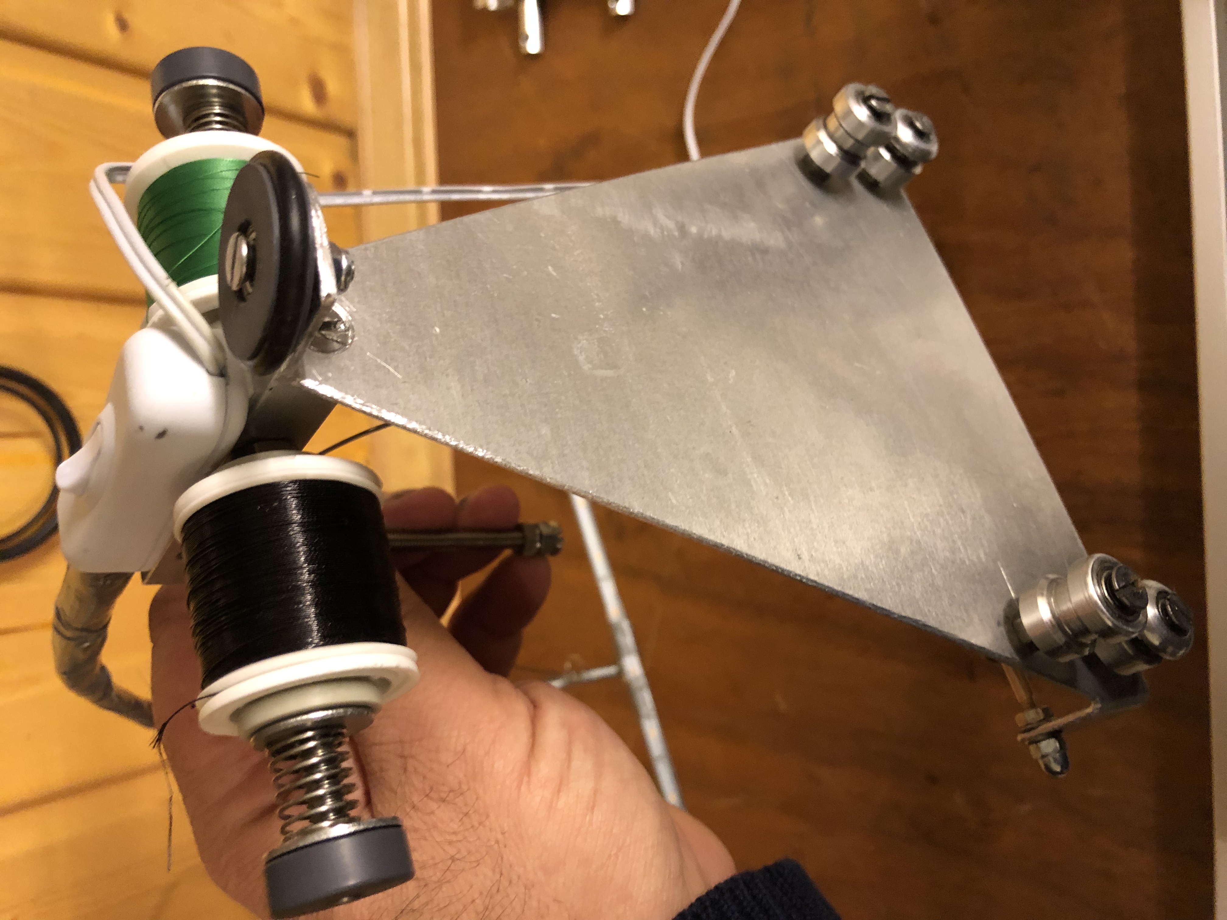 @Seep , danke für dein Lob , du hast immer wieder erwähnt das Plastik-dreibackenfutter von Pacbay welches in einem gebasteltes-günstigeres Version auch habe und ähnliche Erfahrung gemacht habe , deswegen musste etwas feineres-robusteres her welche zupackt um auch was dran zu schleifen-polieren zbs. Kork-Duplon etc. insgesamt ist mir gelungen die proportionen auf dreibackenfutter abzustimen das sie aufeinander passen von der größe her und der ganze Wickelbank wirkt nicht so voluminös ,liegt sehr flach ( da das Profil nur 15 mm stark und schwer ist ) , Saat und stabil auf dem Tisch- kein kipp gefahr oder sonst wenn man auch schusselig drauf kommt, was noch kommen muss ist ein Reitstock...