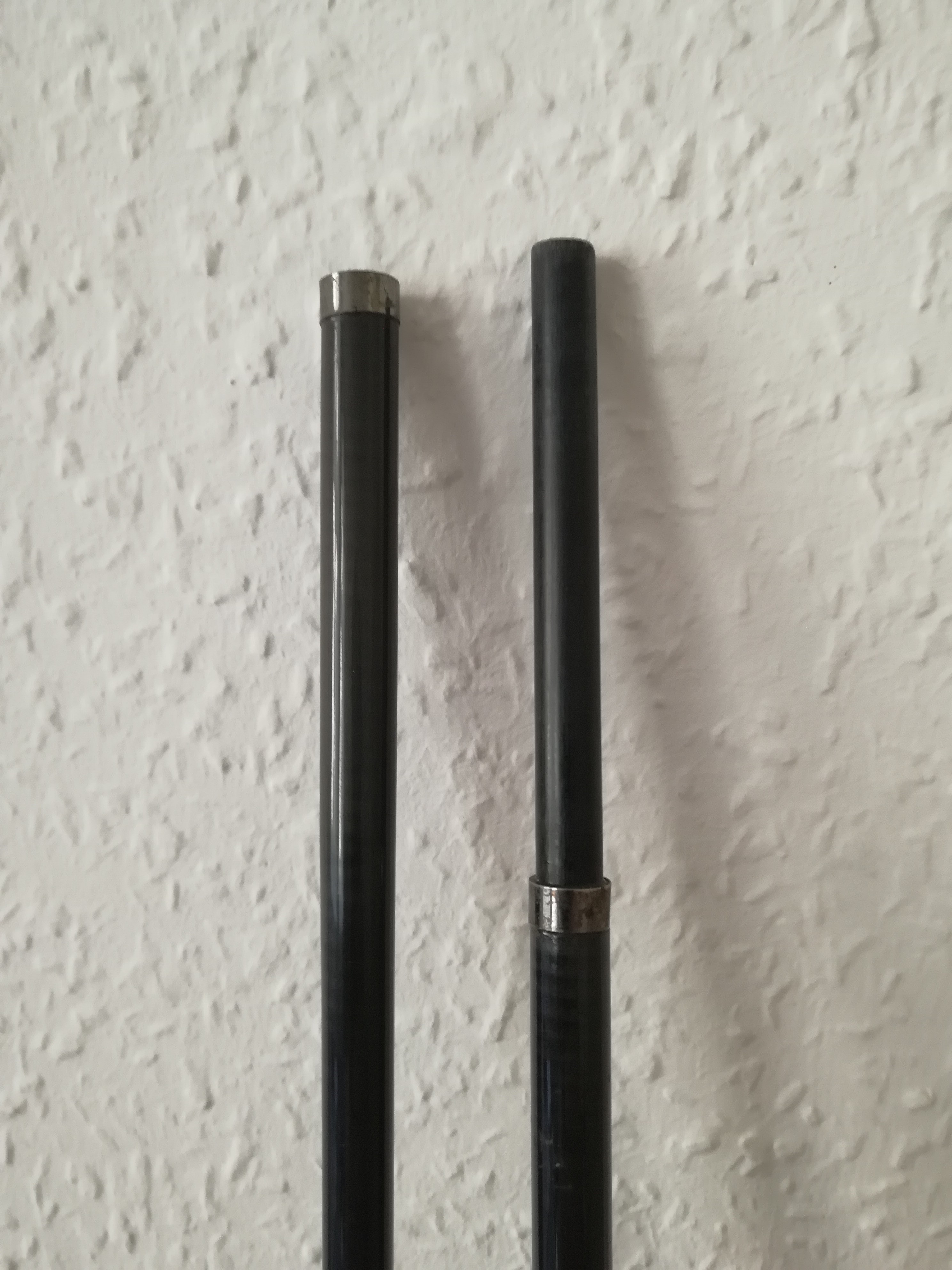 Ich habe da einen sehr alten RST Carbon blank in 3m zweiteilig, Zapfenverbindung, mit original eingesetztem dünneren HT und original eingesetzter Spitze. Alle Steckbereiche, also ST und Ht unterhalb Zapfen und da wo das HT eingeklebt ist, haben einen Metallring als Stütze verbaut. Ich glaube, dass der Blank, einen dieser Superlativnamen hatte, ich komme nur nicht drauf.