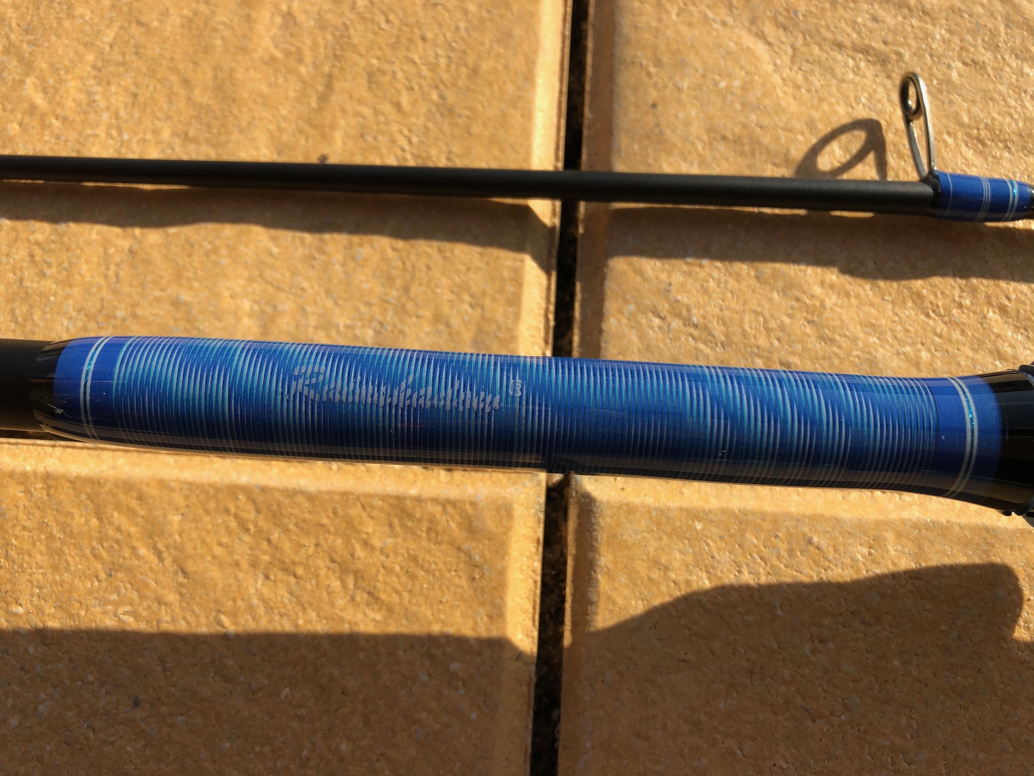 Der Blank ist ein 20-Kilo -Munjau-Jig in 6'6" Länge von ALPS und soll in Italien dann mit einer Stationärrolle gepaart werden und möglichst großen Wallern den Weg aus der Tiefe zeugen. Der Rollehalter ist ein APLS CAH, passend in blausilber.