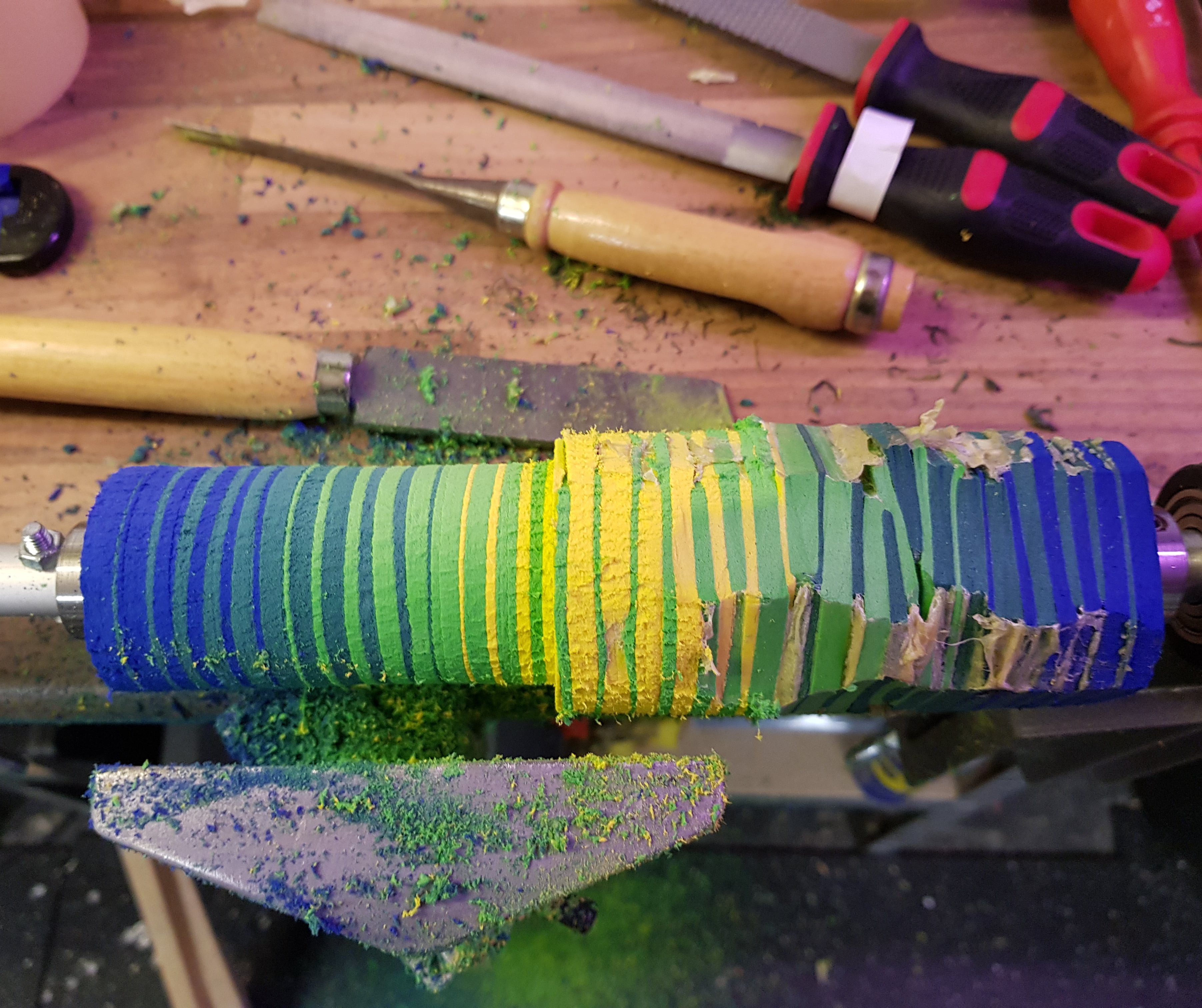 Die Diamandwicklung ist nun auch durch und dreht gerade ihrer Bahnen im Keller, aber da sind schon jetzt schon Luftblasen vom Farbfix drinnen, die ich nicht raus bekomme. Ich könnte ko.. Doing2