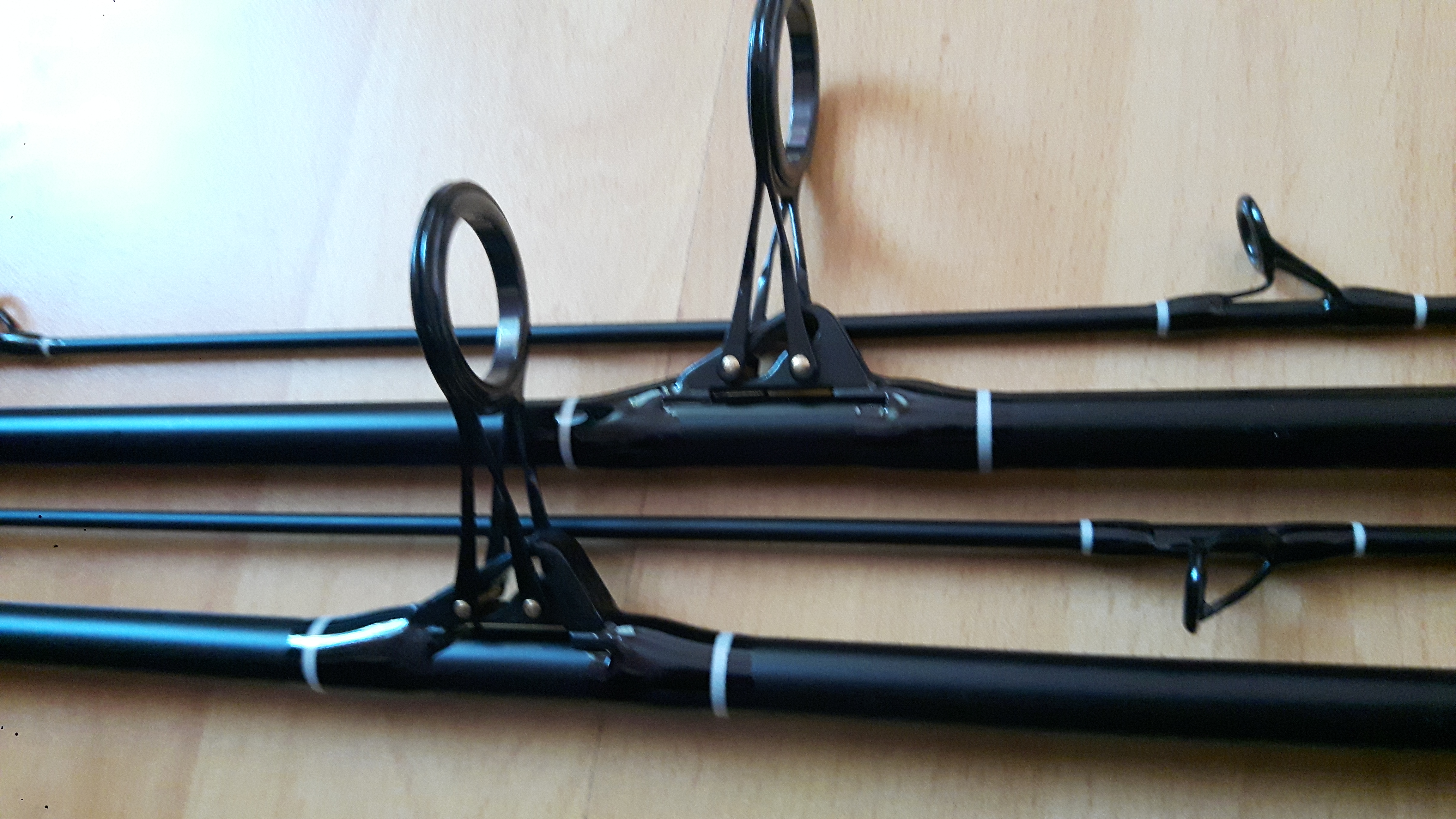 ich finde die Ruten schön. In der Ringaufteilung, sieht das auch ok aus, mit den Klappringen. Klobig hin oder her, Du wolltest ja eine Funktion, also ist das auch gut so. Mich würde interessieren, wie die weißen Duplonsachen nach einem Jahr intensivem Fischen und Sonnenbestrahlung aussehen. Ist das weiße Material in etwa so hart, wie das schwarze ?