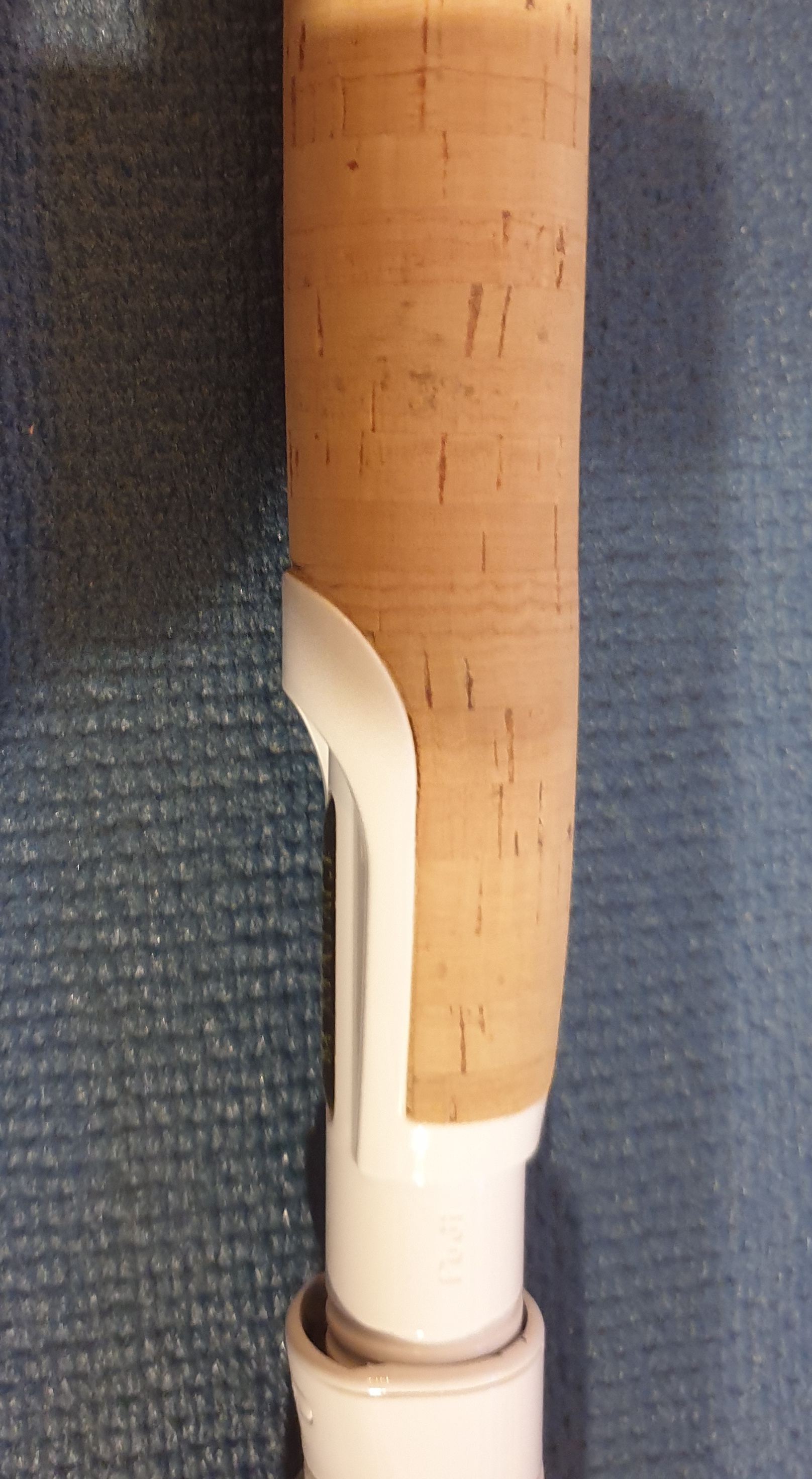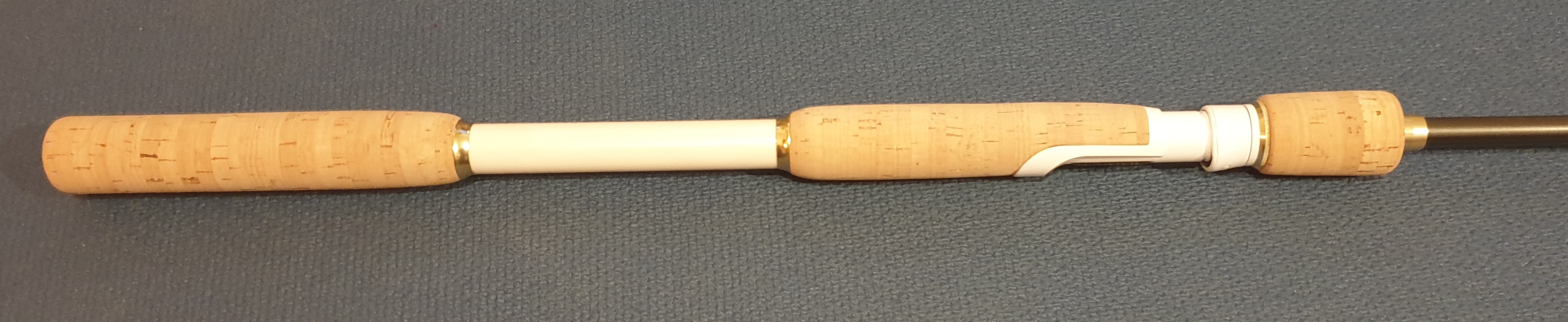 Auf dem Blank hab ich zuerst die unteren beiden Korkstücke und den Juma Split Grip verklebt, dann den RH mit Formkork, danach hab ich das mittlere Korkstück an den RH Kork angeglichen. Das klappte ganz gut. Ich hätte jedoch 5.5 oder 6 cm für den RH nehmen sollen. Dann wäre das einfacher gewesen.