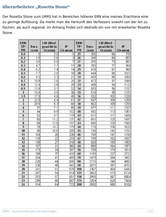 Bezüglich der Tabellenerweiterung, das wurde von Olaf Carsten in der Publikation zu URRS auch über ERN7.9 erweitert, für euro cent (2,3g).
