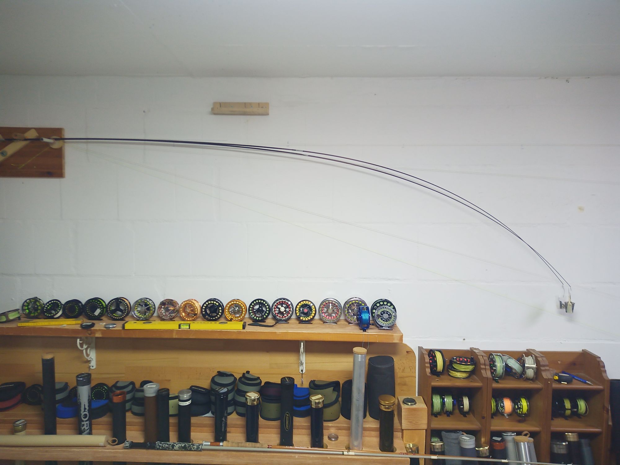 Da der Blank sich ja konisch verjüngt, hat die horizintale Auslenkung des Handteils doch automatisch schon eine kleine Korrektur entgegen dem Durchhang. Bei einer 9 Fuß Rute mit einer freien Länge von 240cm macht schon eine horizontale Abweichung von 1° etwa 4 cm in der Auslenkung aus. Ich habe meine Zweifel, dass man die horizontale Auslenkung immer auf 1° genau bestimmt. Die CCS Methode erscheint mir hier weniger präzise als die 15° Methode.