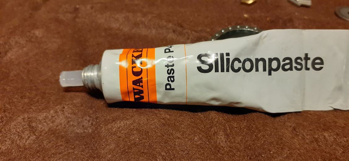 Bild 19 – Nun werden alle Beweglichen Teile ( außer der Bremsscheibe) gefettet und zwar nur mit einem Steifen Silicon Fett, kein Öl oder Silicon Öl, da beim ersten eintauchen ins Wasser alles abgewaschen würde und unweigerlich im Gewässer wäre, und nicht mehr an der Rolle. Geeignet ist eins von Wacker oder Ähnliches.