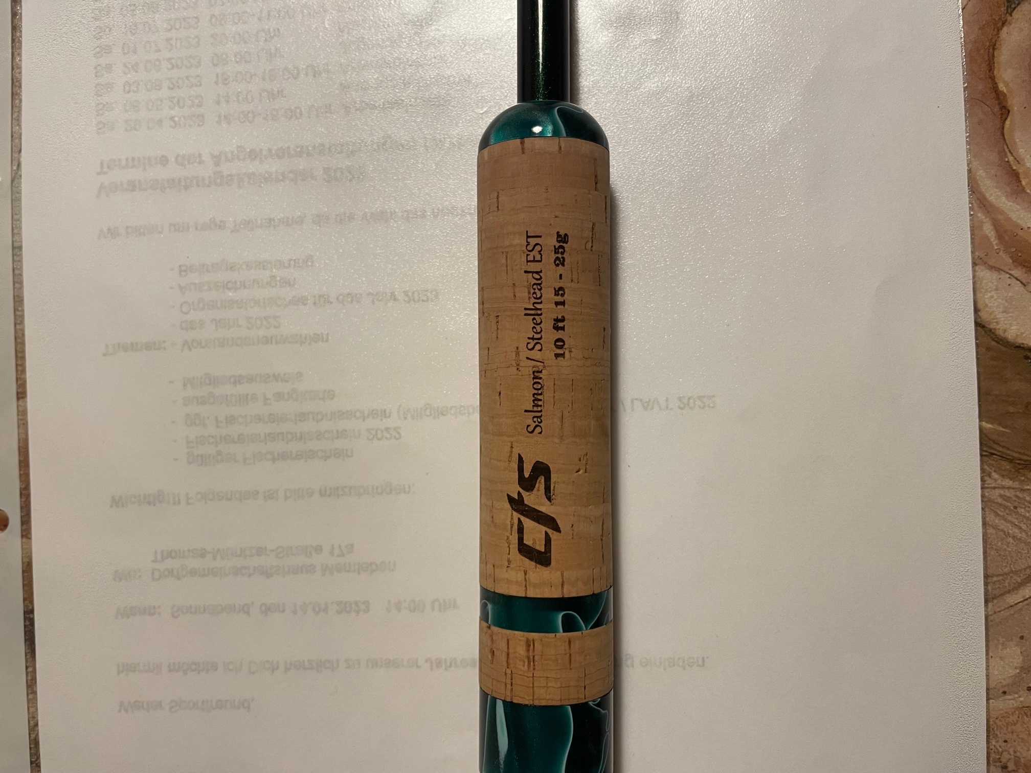 sieht schick aus was du da auf die Griffe gezaubert hast. Ist sicherlich wieder mal eine Menge Arbeit dahinter bis es so aussieht.So eine Lasergravur finde ich echt schick. Ein eigenes Design dauerhaft haltbar und ohne Lacküberzug auf die Rute zu bringen finde ich klasse. Die Kosten für so ein Gerät schrecken mich allerdings ab. Deshalb gibt es bei mir noch Handarbeit mit kleinen Abstrichen.
