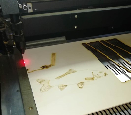 mir hat mal jemand einen Karpfen auf ein Etui gemacht. Erst auf Sperrholz ausprobiert, dann etwas verkleinert und auf das Etui gebrannt. Leider war das Kunstleder und deshalb nicht so ganz gut. Aber auf Leder oder Holz oder auch Kork, da geht das ganz gut. Für runde Werkstücke, da gibt es so Vorrichtungen, die sich drehen, damit der Abstand zum Laser immer gleich bleibt.