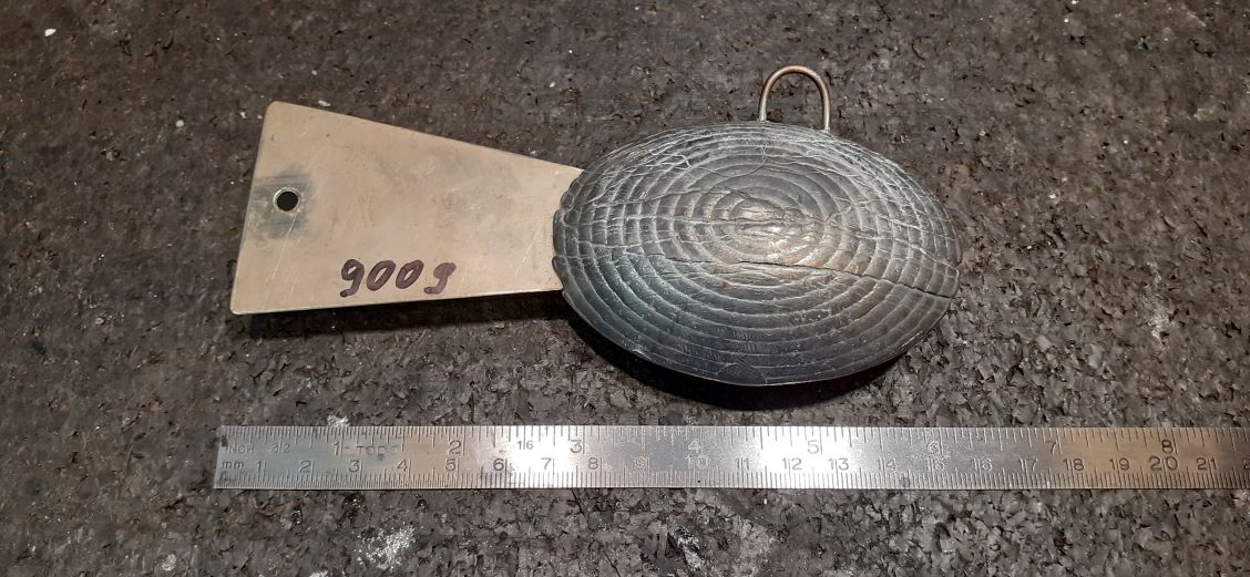 Für das Bleigewicht ( Form vom Verein) musste nur ein Edelstahl Blech stück zugeschnitten werden (aus der Restekiste vom Schlosser), und mit eingegossen werden ( 900g) hoffe das Gewicht Passt.