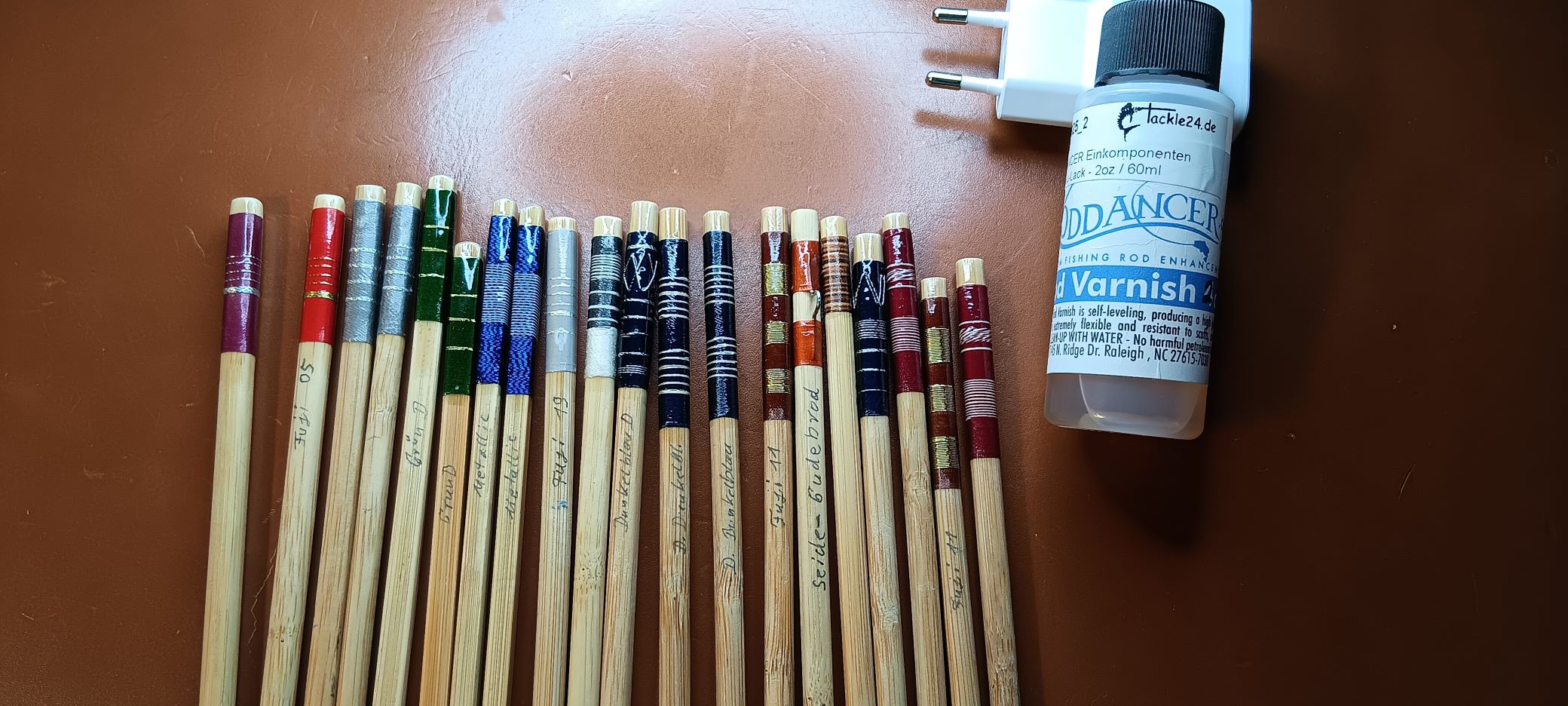 Eventuell versuch ich das mal, wenn ich mich den ganzen zu vielen Projekten widme (erstmal alles einkaufen). Einfach von der letzten Rute das nicht fixierte Purple aufwicheln und nass machen. Dann kann ich das direkt mit der LAckierten Rute vergleichen.
