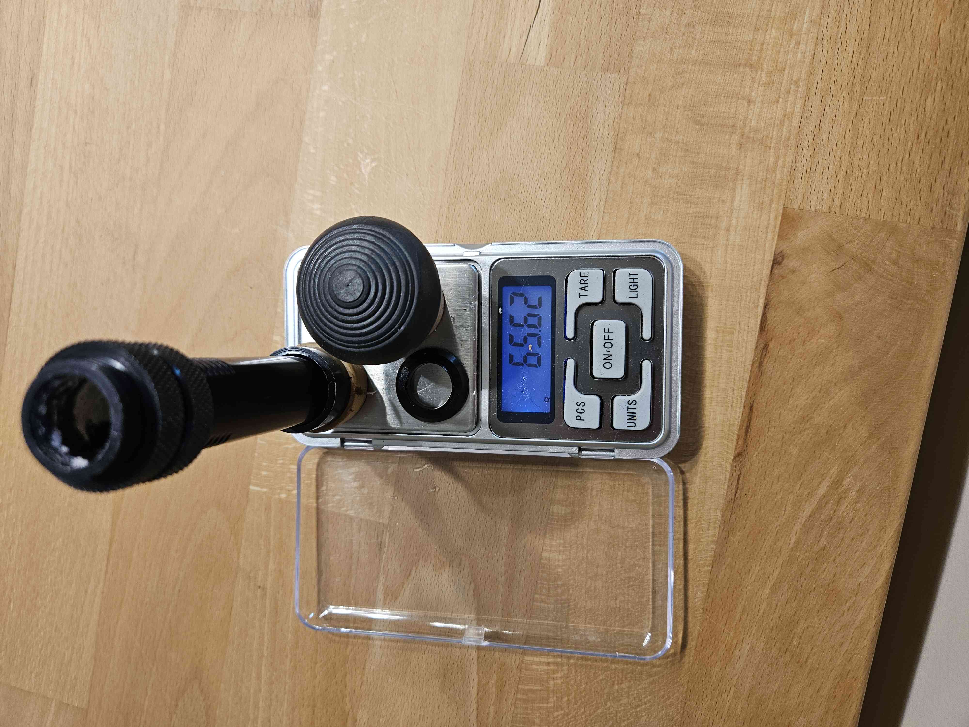 Die Rute wog ziemlich genau 205g. Davon sind aber 65g Gewicht Rollenhalter und Butt.
