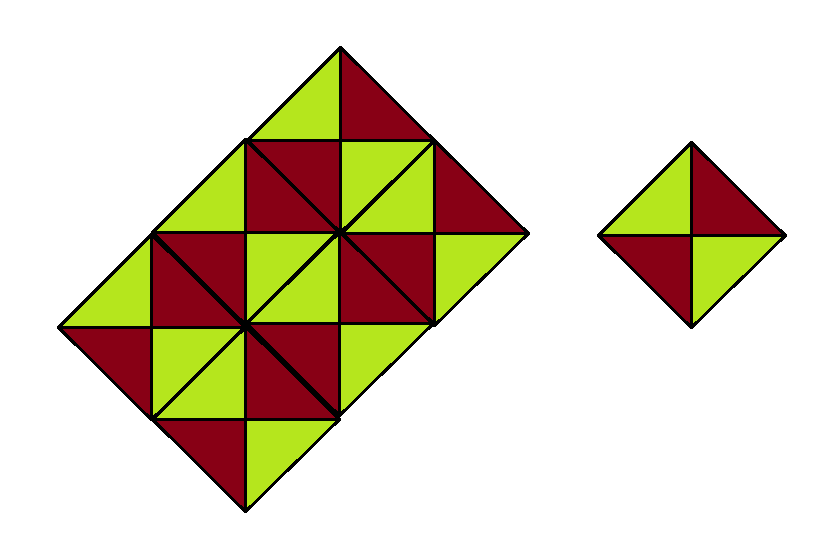 Hier zeigt Deine Vorlage im linken Schwarzweißbild ein ausgeglichenes Layout und im rechten Schwarzweißbild, bei dem im finalen Muster augenscheinlich Quadrate entstehen.