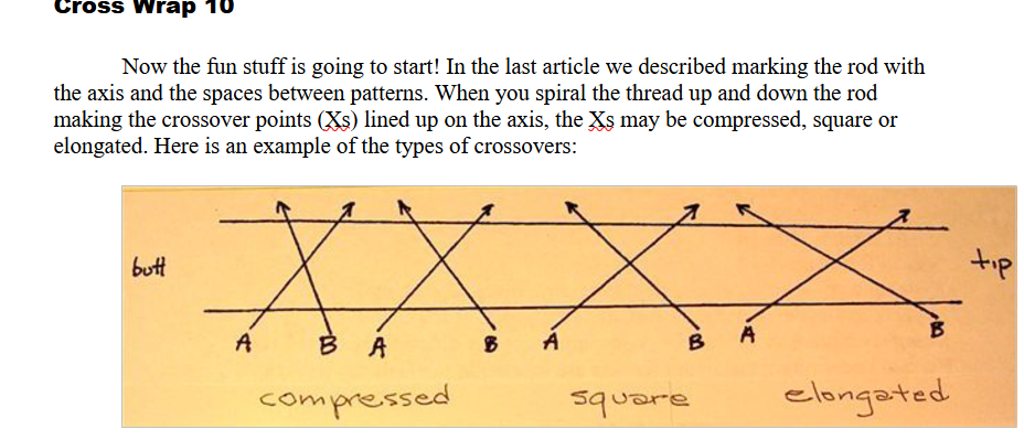 Du wickelst in diesem Versuch einen Faden über die ganze Länge über alle Kreuzpunkte und den anderen aus der Gegenrichtung auch über alle Kreuzpunkte und das ist nicht richtig, zumindest nicht für das Muster. |